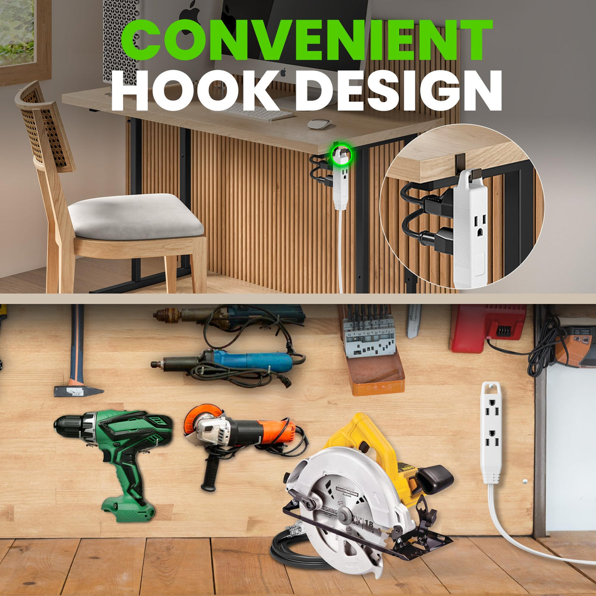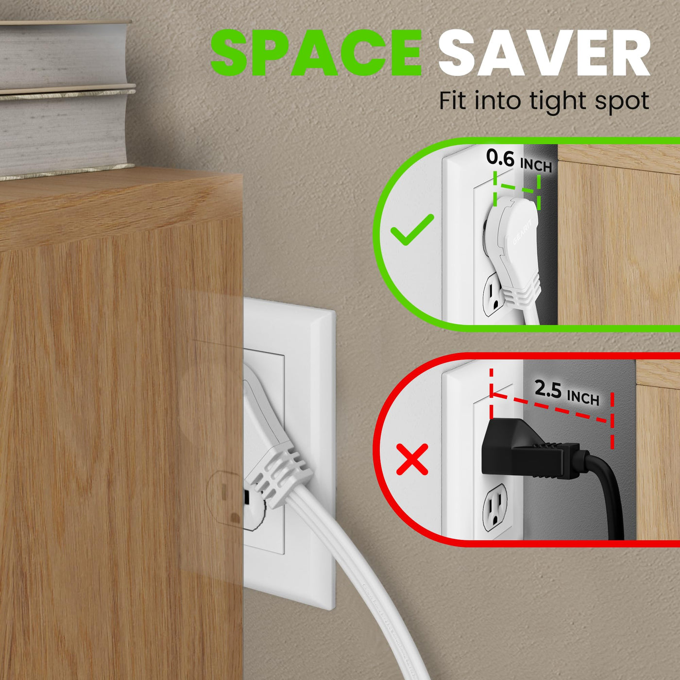 Q: Can I use this extension cord behind furniture?A: Absolutely! The flat plug design allows you to fit it behind bookshelves, sofas, and other furniture without blocking the wall outlet, making it perfect for maximizing space in your home.
