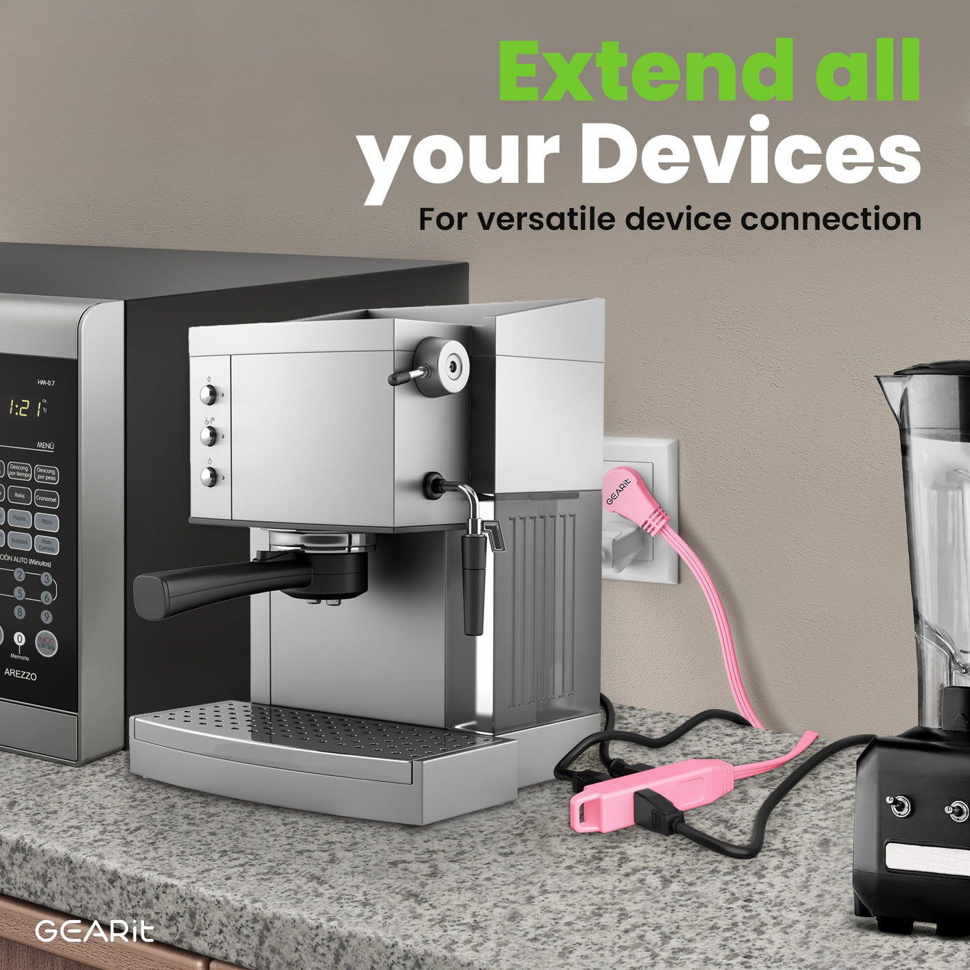 Q: Can I use this extension cord to power multiple devices at once?A: Absolutely! The GEARit extension cord has 3 outlets, allowing you to power up to three devices simultaneously, making it perfect for home offices, entertainment systems, and dorm rooms.