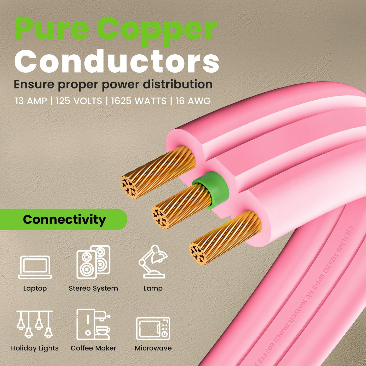360 Degree Rotating Plug - Enjoy Ultimate Flexibility With Our 360 Degree Rotating Flat Plug, Perfect For Accessing Hard-To-Reach Outlets. This Design Ensures You Can Always Reach Any Power Source, No Matter Where Your Outlet Is Located. | Multiple Outlets - Power Up To Three Devices Simultaneously With Our 3 Outlet Extension Cord Flat Plug, Offering Unmatched Convenience And Efficiency In Any Setting. Perfect For Home Offices, Entertainment Systems, Dorm Rooms And More. | Outlet Saver With Flat Plug Design - Transform Your Standard Ac Power Cord Into A Slim, Rotating Flat Plug That Fits Effortlessly Behind Furniture, Desks, Bookshelves, And Appliances Without Obstructing Wall Outlets Or Blocking Other Sockets. Ideal For Tight Spaces, This Clever Design Maximizes Space In Your Home And Keeps It Tidy And Organized. | Pink Cord For Vibrant Living Spaces - The Pink Color Adds A Vibrant And Stylish Element, Allowing It To Blend Seamlessly With Creative And Playful Decor Styles. Whether Used In A Bedroom, Dorm Room, Or Art Studio, It Adds A Pop Of Color And Enhances The Overall Aesthetic. | High Quality - Etl Certified, 3-Prong Grounded Plug Ensures Safety And Reliability, Delivering 13Amp, 125 Volt, And 1625 Watts Of Power For All Your Electrical Needs. Built To Last With Premium Materials, Ensuring Long-Term Use.