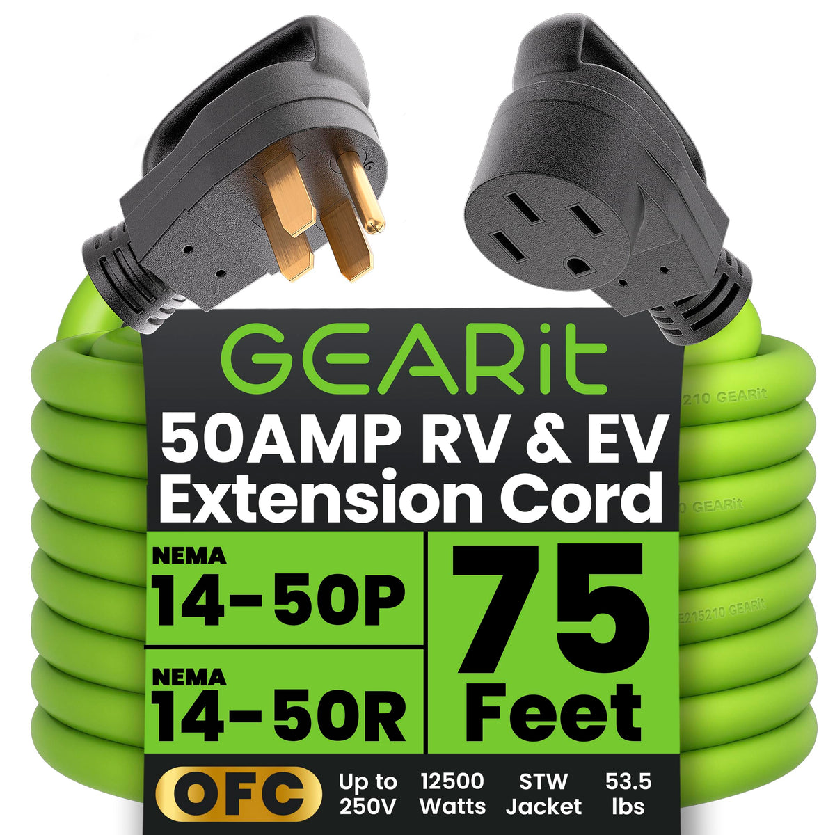 Gearit 50-Amp Extension Cord For Rv & Ev, 250-Volt, 4-Prong, Compatible With Tesla Models, Nema 14-50P To 14-50R 6/3, 8/1 Stw Aw