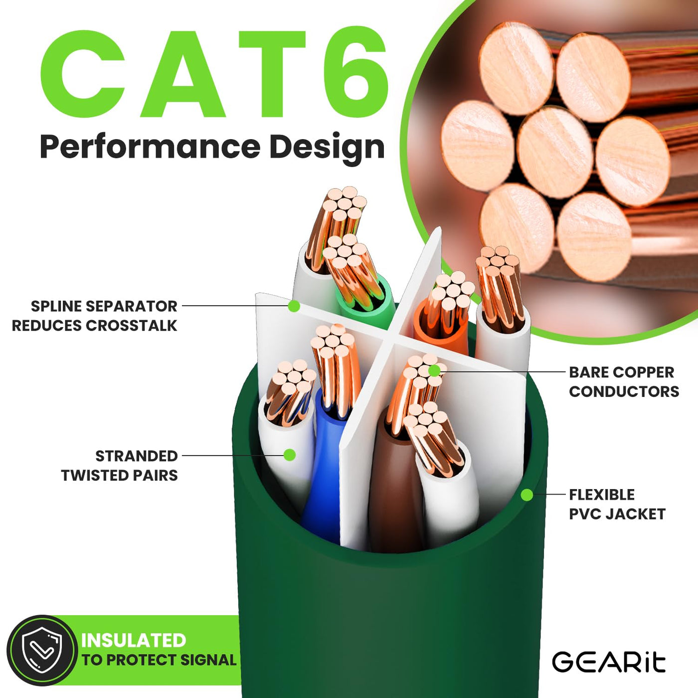 Future-Proof Your Network For 10-Gigabit Ethernet With Gearit Cat 6 Network Patch Cables. With Gearit Cat6 Cables, Your Network Will Be Ready For The Future And Will Still Be Working When You Get There. Industry Standard Ansi/Tia-568-C.2, Cat 6, Etc. Verified Cables With High Compliance Rj45 (8P8C) Snag-Less Connectors And Molded Strain Relief Boots. Bandwidth Rating Of Up To 550 Mhz Ensures Compatibility With Ethernet 10Base-T, 100Base-Tx(Fast Ethernet), 1000Base-T (Gigabit Ethernet), 10Gbase-T (10-Gigabit Ethernet), Peer-To-Peer, And Any Other Applications That Utilize Networking Cables Including Telephony, Home Automation And Long Distance Video Transfer Technologies Like Hmdi Over Ethernet. Use To Connect Any Network Able Device With Rj45 Connection Including Pc'S, Laptops, Servers, Printers, Nas Storage Devices, Voip, Power Over Ethernet (Poe), Dvr'S, Etc. Utp - Unshielded Twisted Pairs -The Effectiveness Of Utp Cable Design Which Uses Twisted Pairs Without The Need For Additional Shielding Have Allowed This Type Of Cabling To Be The Most Cost Effective Solution Available For Any Type Of Advanced Local Area Network Connection And Made It An Industry Standard For A Wide Variety Of Applications. Specifications Cable Type: Cat6, Utp Conductor Material(More...)