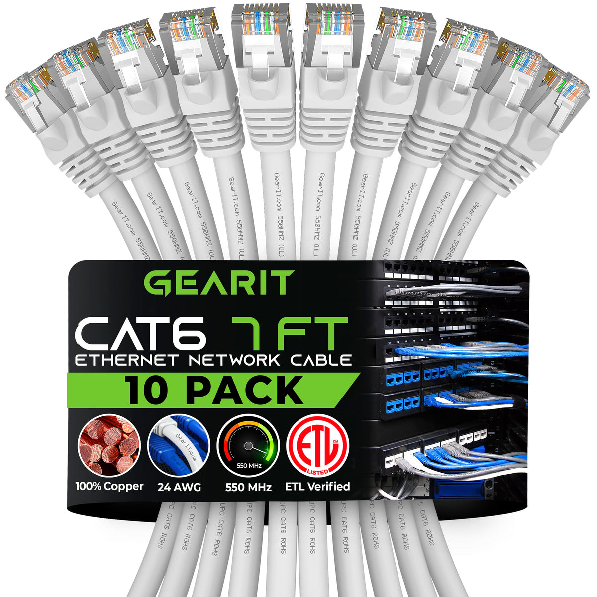 Future-Proof Your Network For 10-Gigabit Ethernet With Gearit Cat 6 Network Patch Cables. With Gearit Cat6 Cables, Your Network Will Be Ready For The Future And Will Still Be Working When You Get There. Industry Standard Ansi/Tia-568-C.2, Cat 6, Etc. Verified Cables With High Compliance Rj45 (8P8C) Snag-Less Connectors And Molded Strain Relief Boots. Bandwidth Rating Of Up To 550 Mhz Ensures Compatibility With Ethernet 10Base-T, 100Base-Tx(Fast Ethernet), 1000Base-T (Gigabit Ethernet), 10Gbase-T (10-Gigabit Ethernet), Peer-To-Peer, And Any Other Applications That Utilize Networking Cables Including Telephony, Home Automation And Long Distance Video Transfer Technologies Like Hmdi Over Ethernet. Use To Connect Any Network Able Device With Rj45 Connection Including Pcs, Laptops, Servers, Printers, Nas Storage Devices, Voip, Power Over Ethernet (Poe), Dvrs, Etc. Utp - Unshielded Twisted Pairs -The Effectiveness Of Utp Cable Design Which Uses Twisted Pairs Without The Need For Additional Shielding Have Allowed This Type Of Cabling To Be The Most Cost Effective Solution Available For Any Type Of Advanced Local Area Network Connection And Made It An Industry Standard For A Wide Variety Of Applications. Specifications Cable Type: Cat6, Utp Conductor Material(More...)
