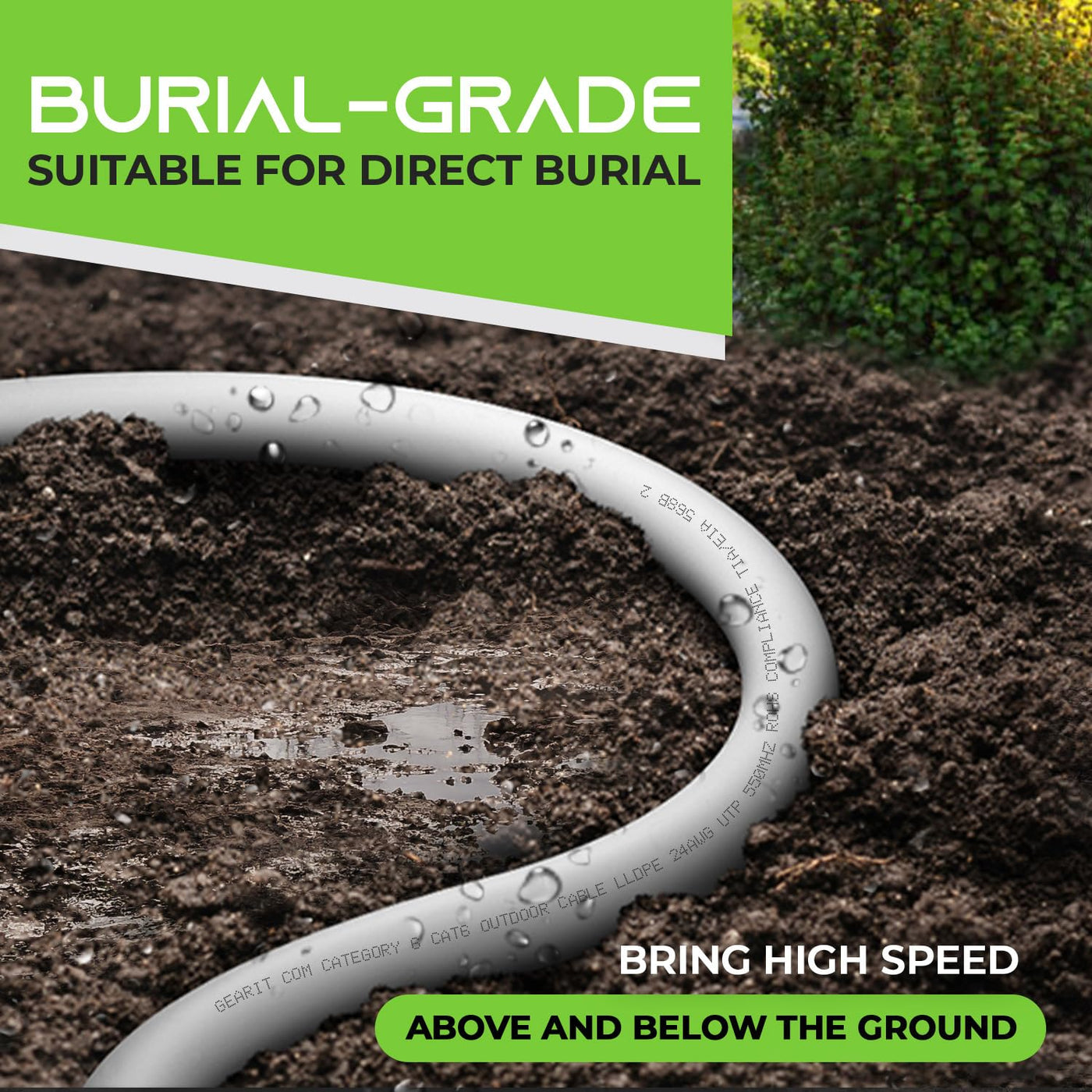 Gearit Cat6 Ethernet Cable Is A Cca - Copper Clad Outdoor Ethernet Cable That Is Soft, Flexible, Weatherproof, And Resists Sun, Rain, Snow, And Low/High Temperatures. It Can Direct Burial In-Ground Thanks To Its Challenging Pvc Insulation. This Cable Easily Fits Into Intricate Locations Such As Corners Or Bends Without Any Problem. Improve Home And Office Connectivity With Quality And The Best Price.