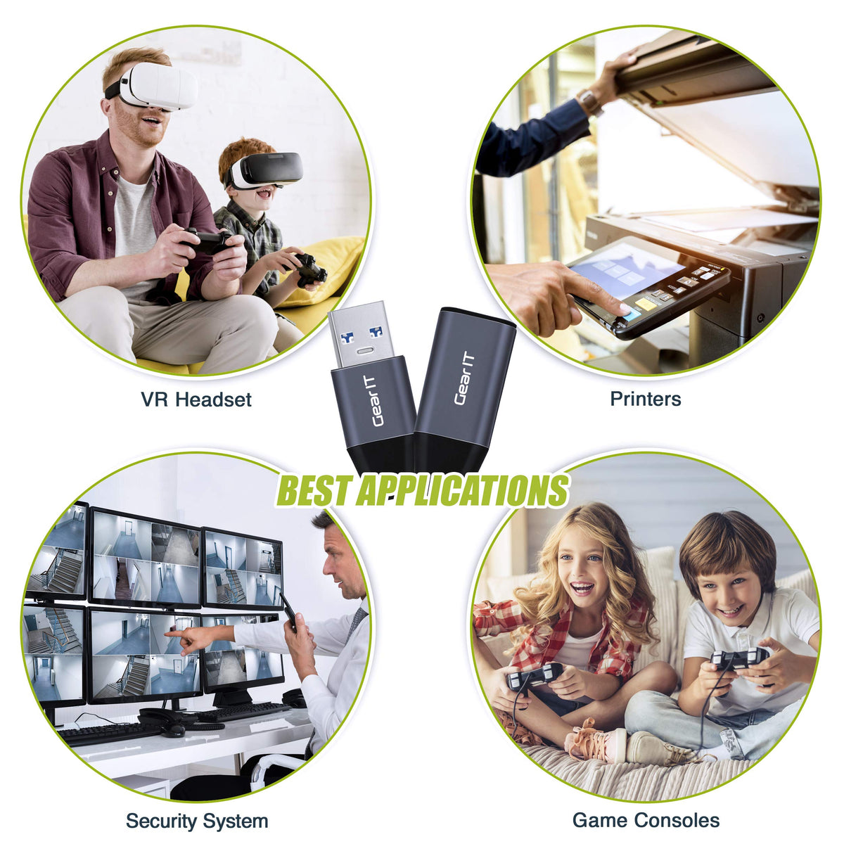 Q: What devices are compatible with the GearIT USB 3.0 Active Extension Cable?A: The GearIT USB 3.0 Active Extension Cable is compatible with a variety of devices including Oculus Rift, HTC Vive, PlayStation VR Headset, Samsung Odyssey Plus, USB hubs, external hard drives, webcams, and other USB peripherals.