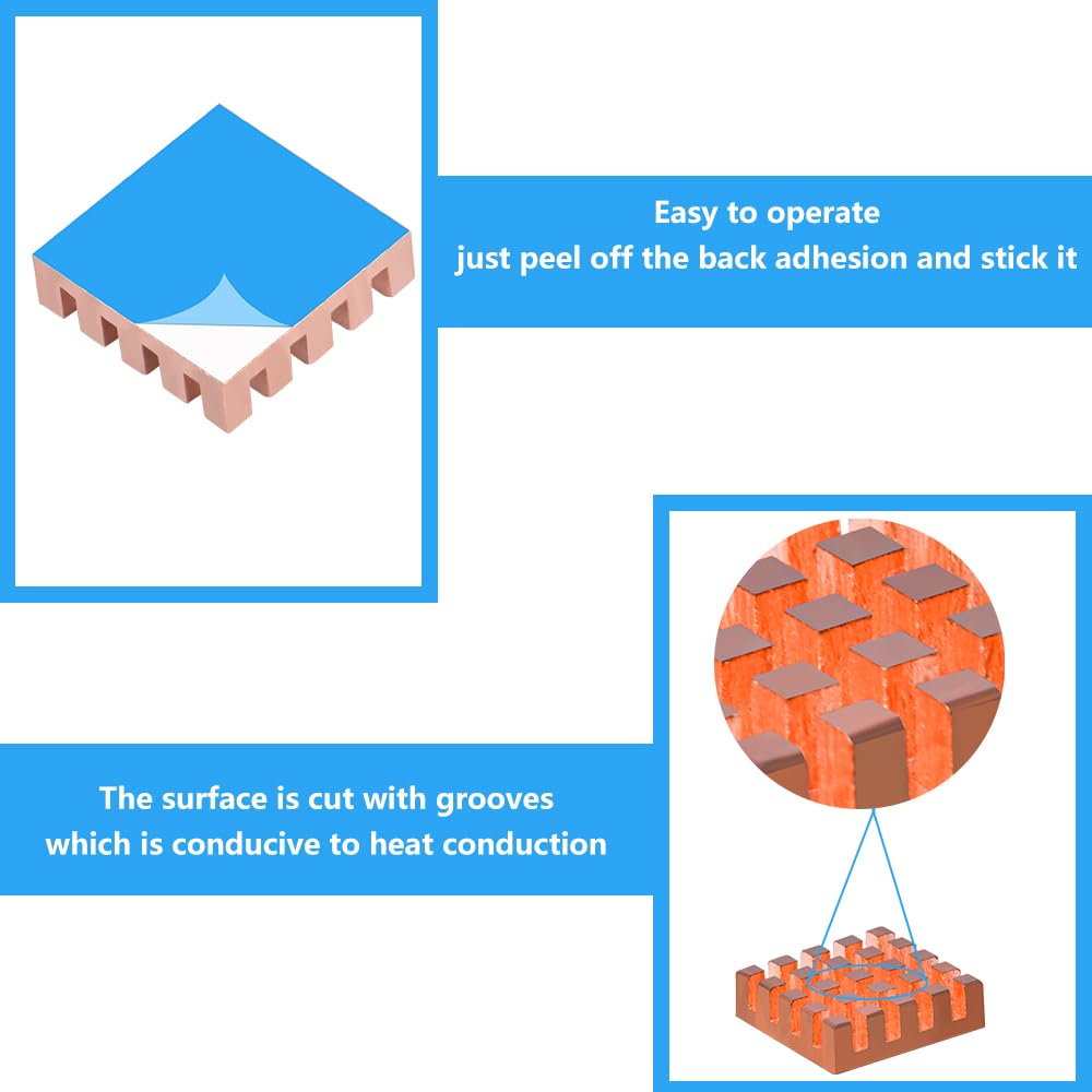 Geeekpi 8Pcs Copper Heatsinks For Raspberry Pi 5, Heatsinks Cpu Cooler With Thermal Conductive Adhensive Tape For Raspberry Pi 5