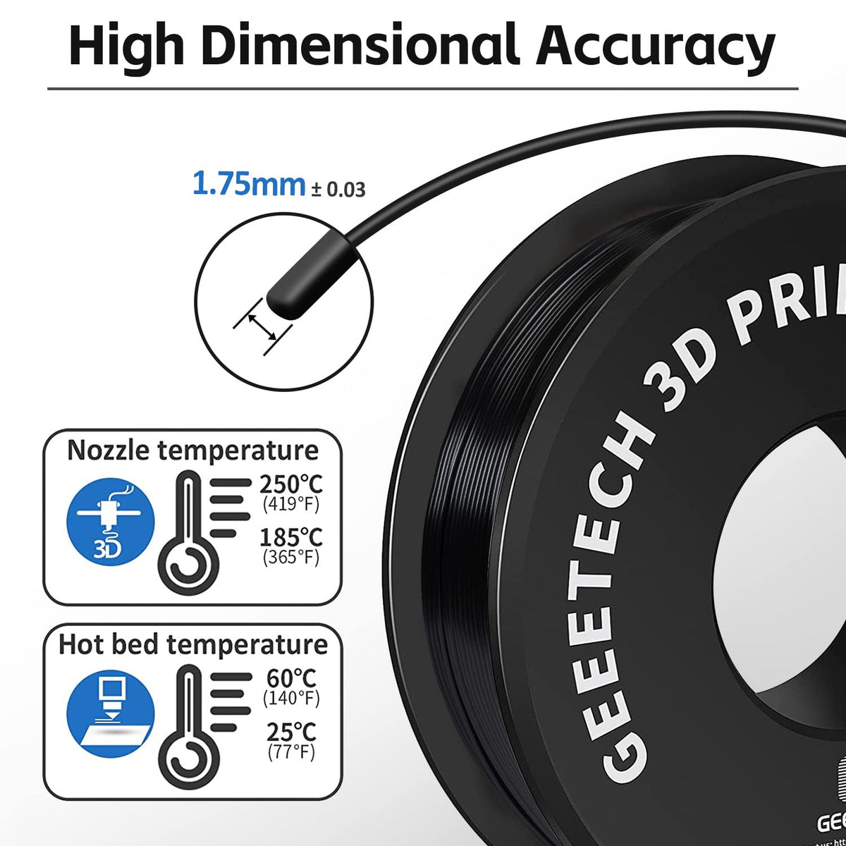 Q: How should I store the Geeetech PLA filament to maintain its quality?A: To maintain the quality of the Geeetech PLA filament, store it in a cool, dry place away from direct sunlight and moisture. Using a resealable bag or filament dry box can also help prevent absorption of humidity.