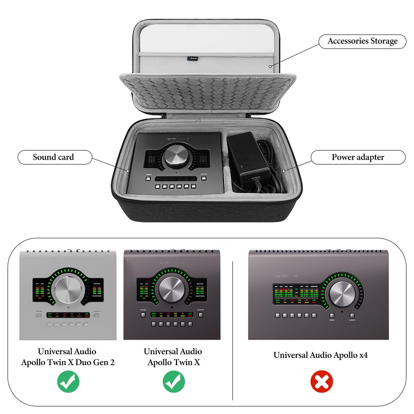 Audio Interface Case Compatible With (Not Limited To): - Compatible With Universal Audio Apollo Twin Twin X Duo Case. - Compatible With Universal Audio Apollo Twin X Quad Case. - Compatible With Universal Audio Apollo Twin Usb Case. - Compatible With Universal Audio Apollo Twin X Duo Gen 2 Case. - Compatible With Universal Audio Apollo Twin X Quad Gen 2 Case. - Compatible With Universal Audio Apollo Twin Mkii Case. Note: - Audio Interface Carrying Case Only, Device Is Not Included.