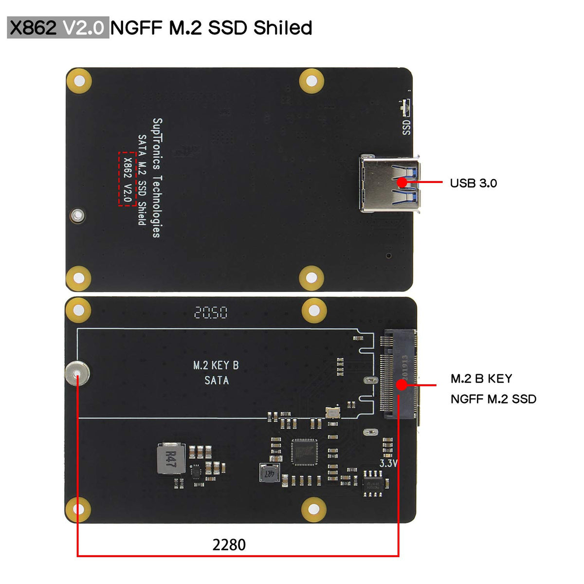 The X862 V2.0 M.2 Ngff Sata Ssd Shield Is Designed For Raspberry Pi 4 Model B, It Provides A Complete Storage Solution For Raspberry Pi 4. New X862 V2.0 Only Support M.2 Ngff Ssd Key-B 2280 Length. The X860 V2.0 Support Uasp For Raspberry Pi 4.