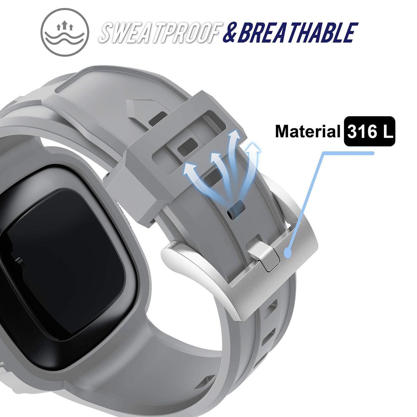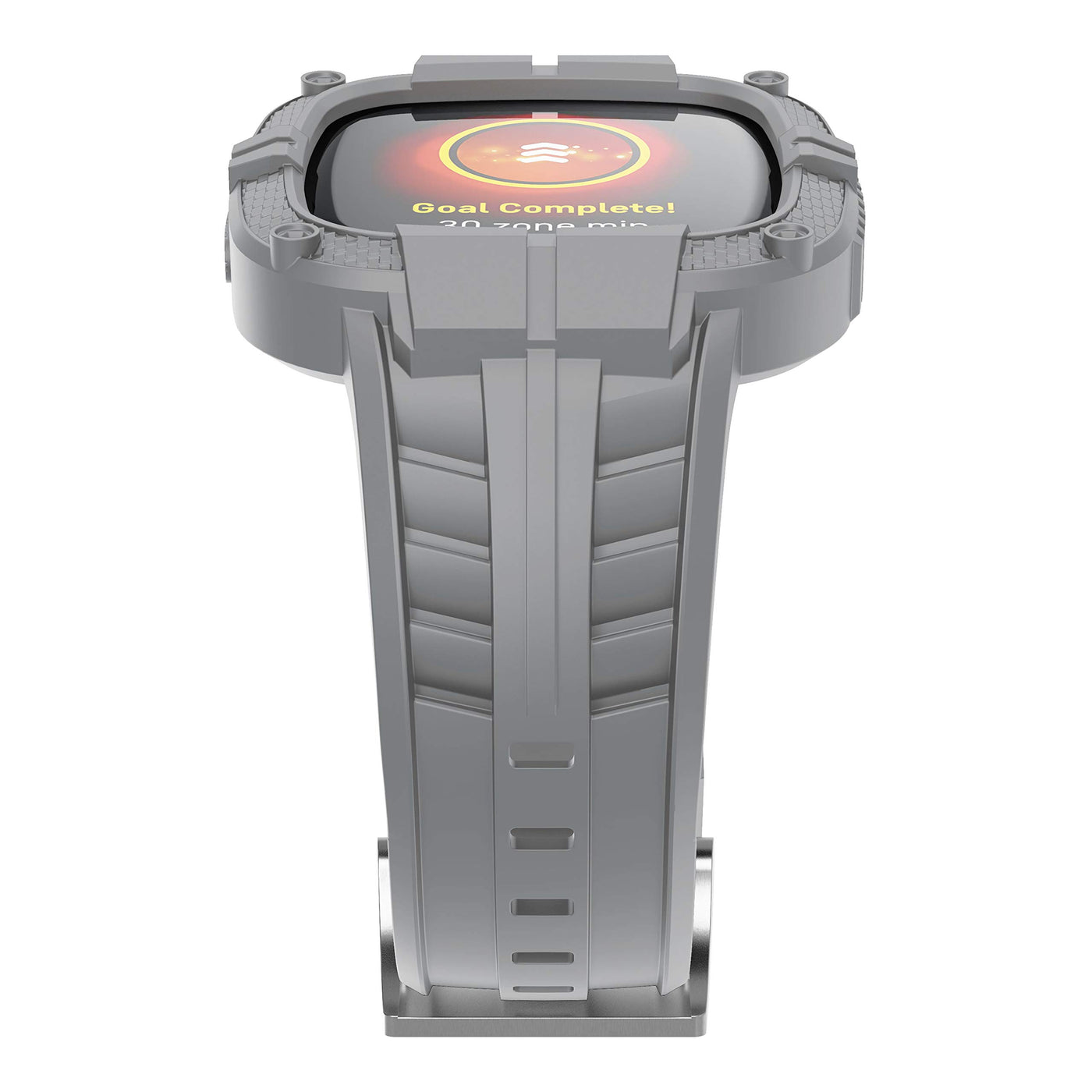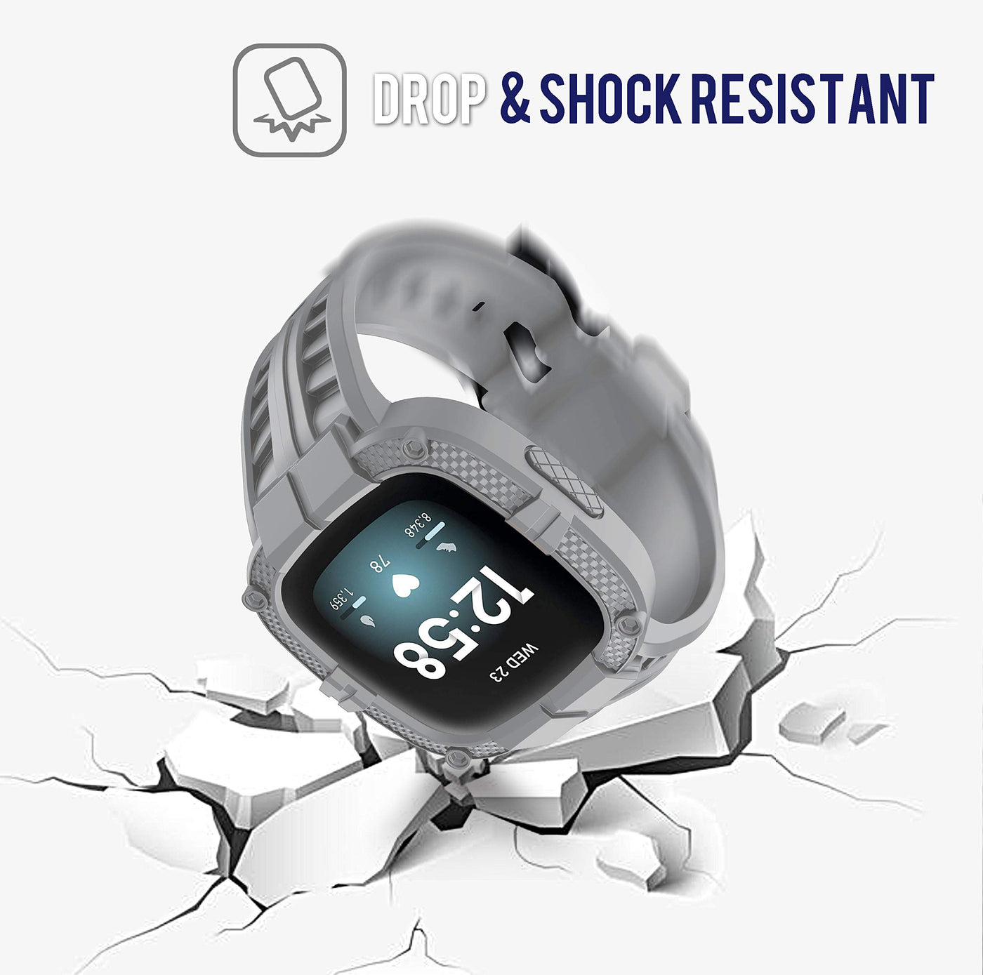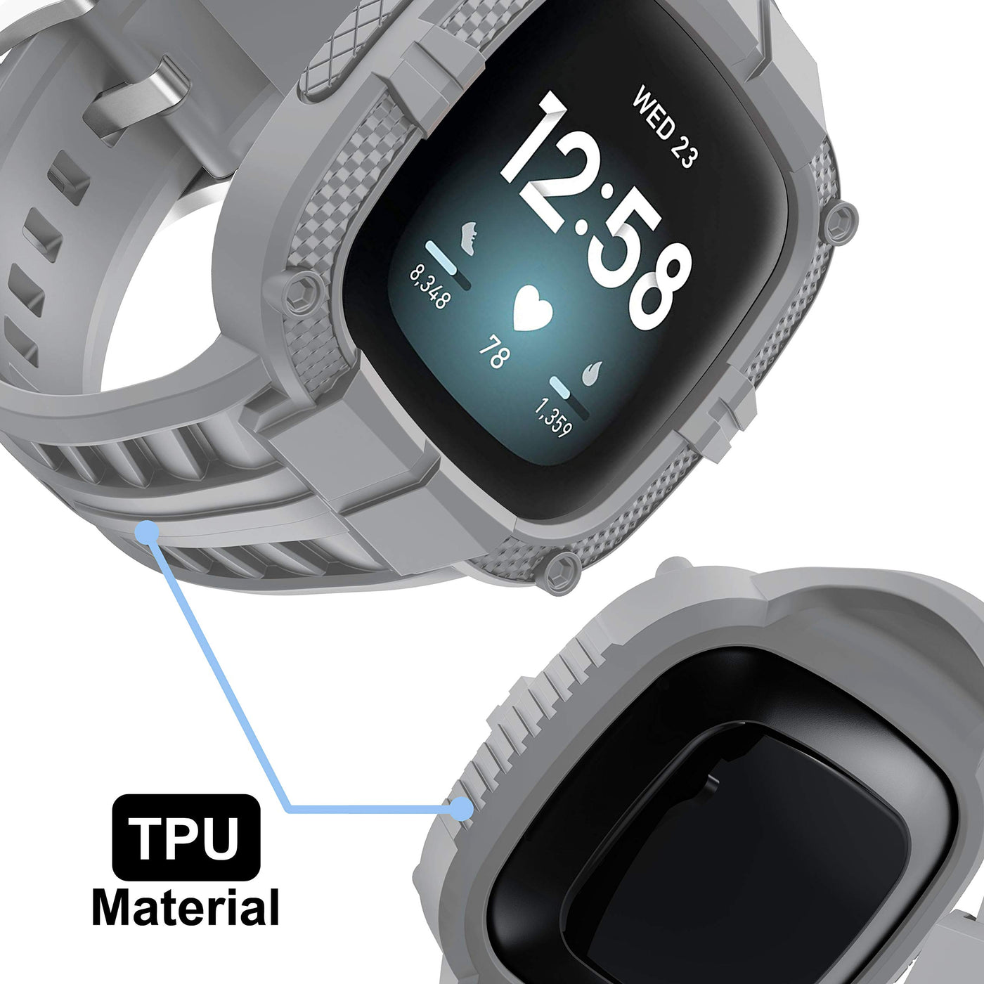 Gelishi Compatible For Fitbit Versa 3/Fitbit Sense Bands With Case, Men Tpu Sport Band Rugged Shockproof Protective Case Wristband For Fitbit Versa 3, Grey
