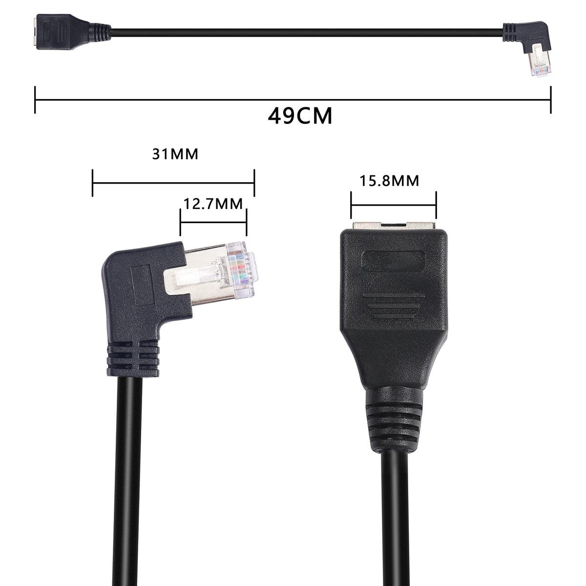 Product Description Angle: Rightward Angled ; Size:50Cm Color: Black. Bandwidth: Up To 250Mhz; Transmitting Data At Speeds: Up To 100Mbps; 26Awg, Od: 6.2 Mm; Compatible With : 1. Compatible With Utp, Ftp, Cat 5 Ethernet Cable; 2.Also Backward Compatible With Cat 5, 5E Cable; 3. It Can Also Be Used With Cat 6/7 Ethernet Cable, While The Transfer Speed Will Be The Cat 5 Standard Speed. Package:Rightward Angled Cat5 Shielded Extension Cable Male/Female X1 Right Angle 90-Degree Patch Cable Extends Your Existing Ethernet Connection With This 90-Degree Patch Cable Instead Of Attaching An Adapter Or Bending A Straight Ethernet Cable When In Tight Spaces. Rj45 Upward Angle Male To Female 90 Degree Angle Rj45 A Male To A Female Screw Panel Mount Network Extension Cable, Support Ethernet Cat 5E/Cat 5.