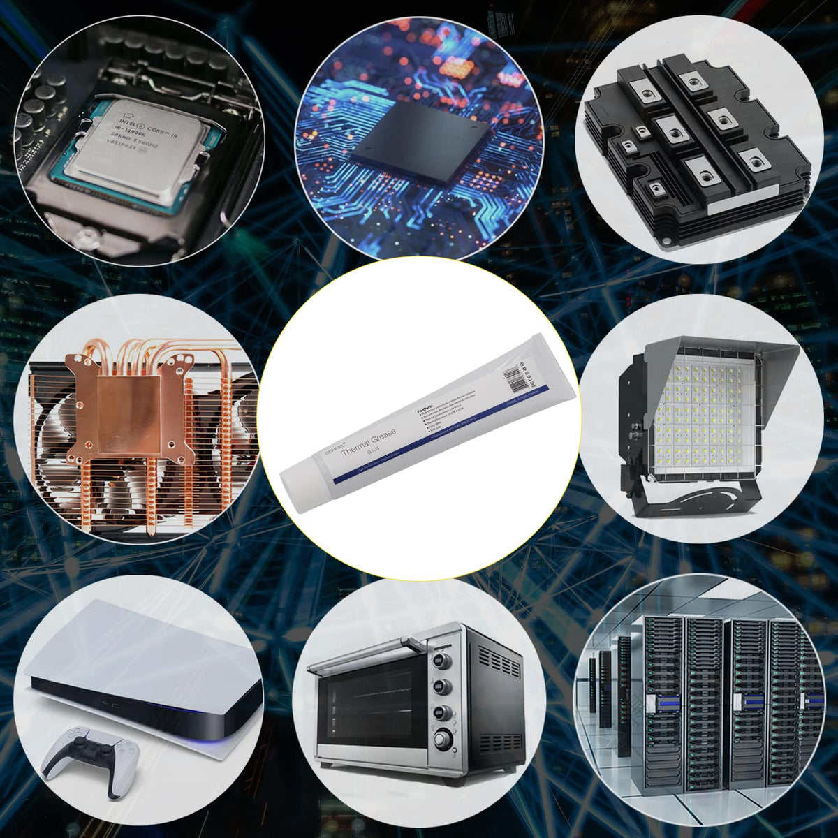 * 100% New. * Helps Disperse The Heat From Cpu To Heatsink Effectively. * Suitable For: Cpu Heatsink Or Chip. High Temperature Resistance * Non-Toxic, Tasteless, Non-Corrosive * Net Weight: 100G * Thermal Conductivity: >1.63W/M-K * Thermal Resistance: