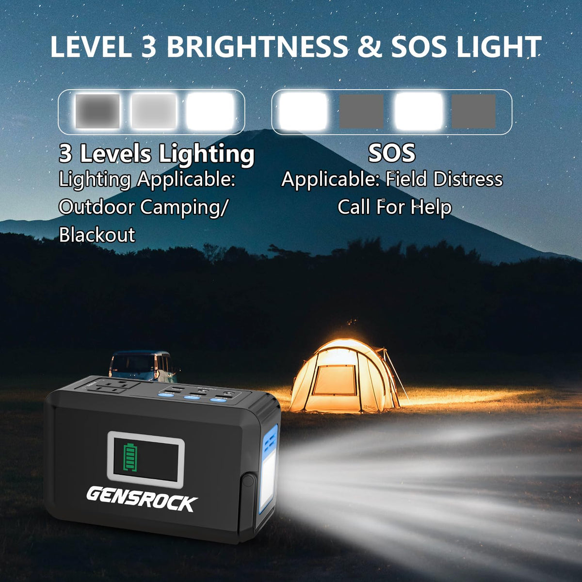 Gensrock Portable Power Station, 88Wh Camping Solar Generator, Lithium Battery Power Bank With 2 110V/150W Peak Ac Outlet, Qc 3.