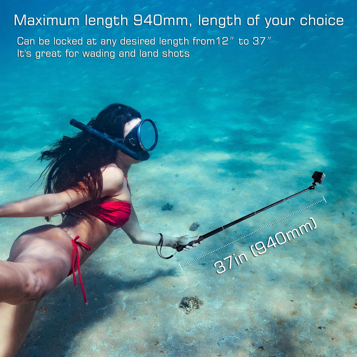 Gepuly 360Ballhead Waterproof Selfie Stick With Tripod Stand Phone Holder- Underwater Selfie Stick Pole - For Gopro Hero 13 12 11 10 9 Insta360 Akaso Dji Osmo Vlog Diving Monopod