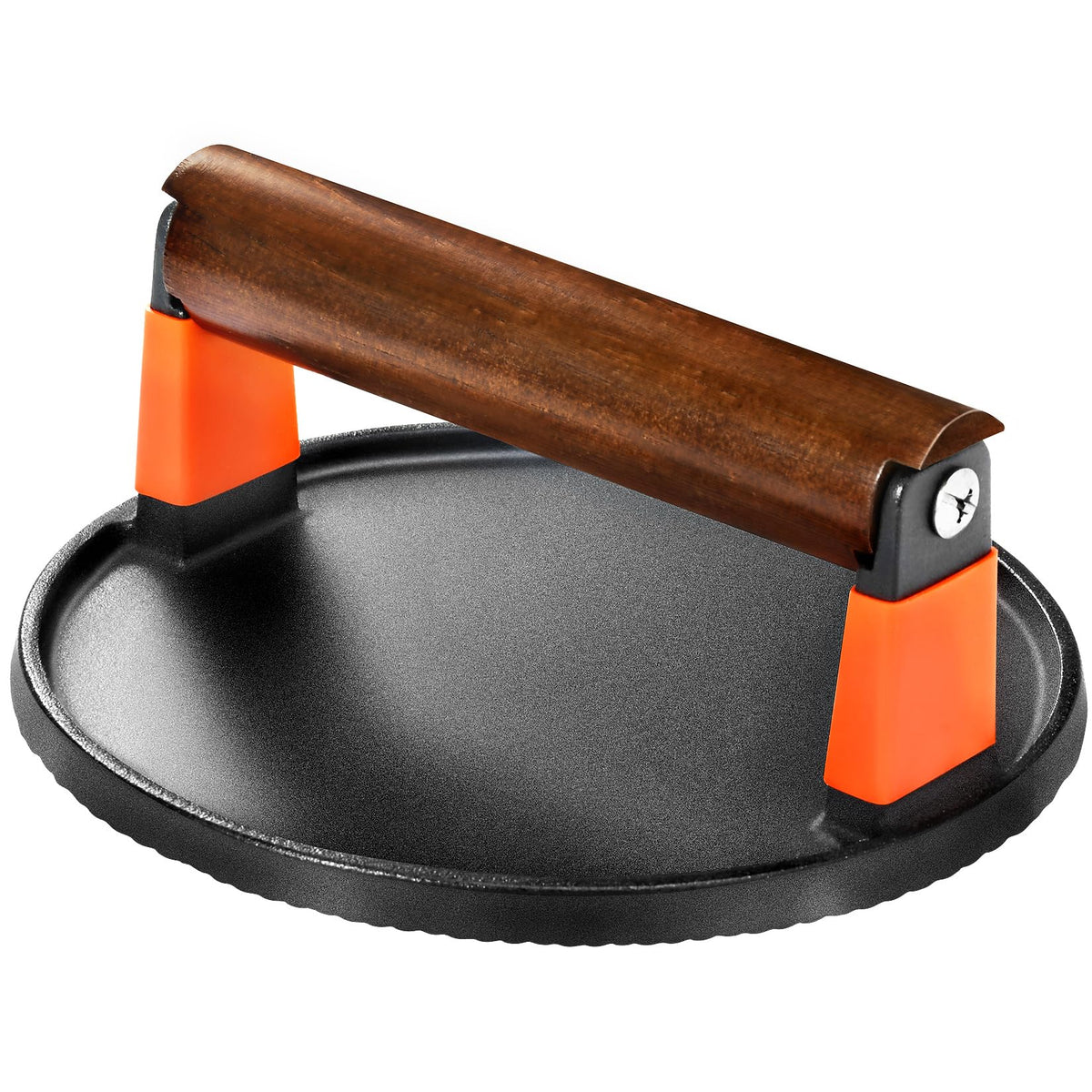 Ggc Smash Burger Press, Cast Iron Bacon Press For Hamburger, Steak, Bacon, Sandwiches, 7'' Round Meat Press With Wooden Handle F