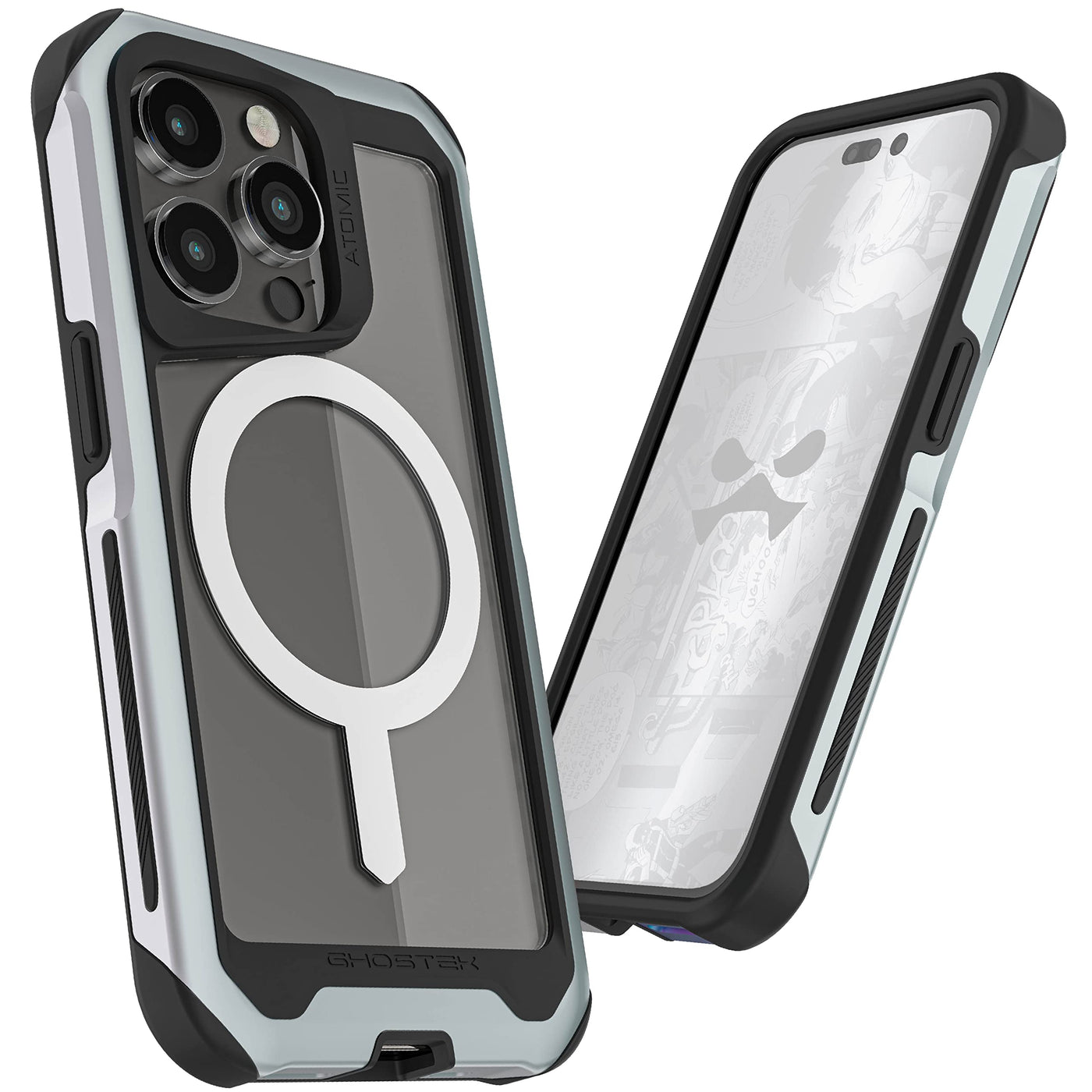 Q: What kind of protection does the Ghostek ATOMIC slim case provide for the iPhone 14 Plus?A: The Ghostek ATOMIC slim case offers military-grade protection, designed to withstand drops from heights of up to 12 feet. Its dual-layer construction, featuring a strong aluminum frame and shock-absorbing materials, ensures your iPhone 14 Plus is well-protected from accidental falls.