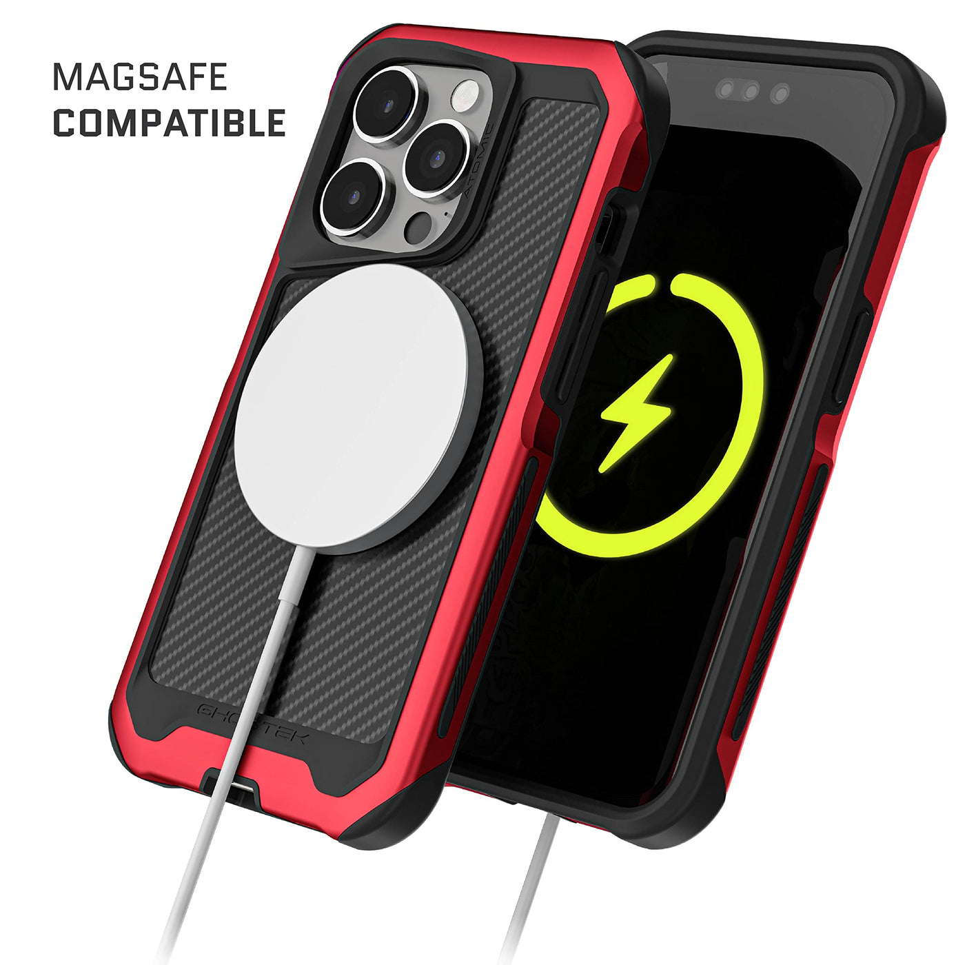 Q: Is the Ghostek ATOMIC slim case compatible with MagSafe accessories?A: Yes, the Ghostek ATOMIC slim case is compatible with MagSafe accessories and chargers, thanks to its built-in MagSafe magnets. This allows for easy attachment of various accessories.