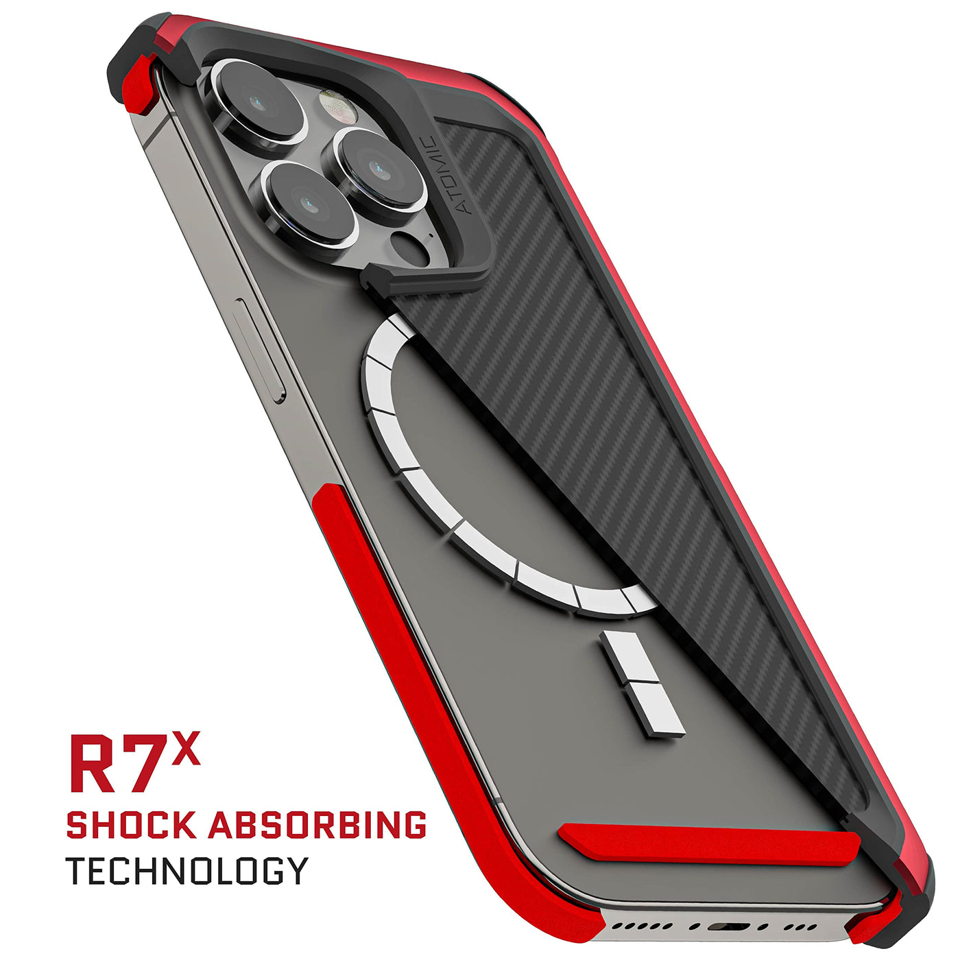 Ghostek Atomic Slim Magsafe Iphone 14 Plus Case With Real Aramid Fiber Back And Red Aluminum Metal Bumper Tough Heavy Duty Prote