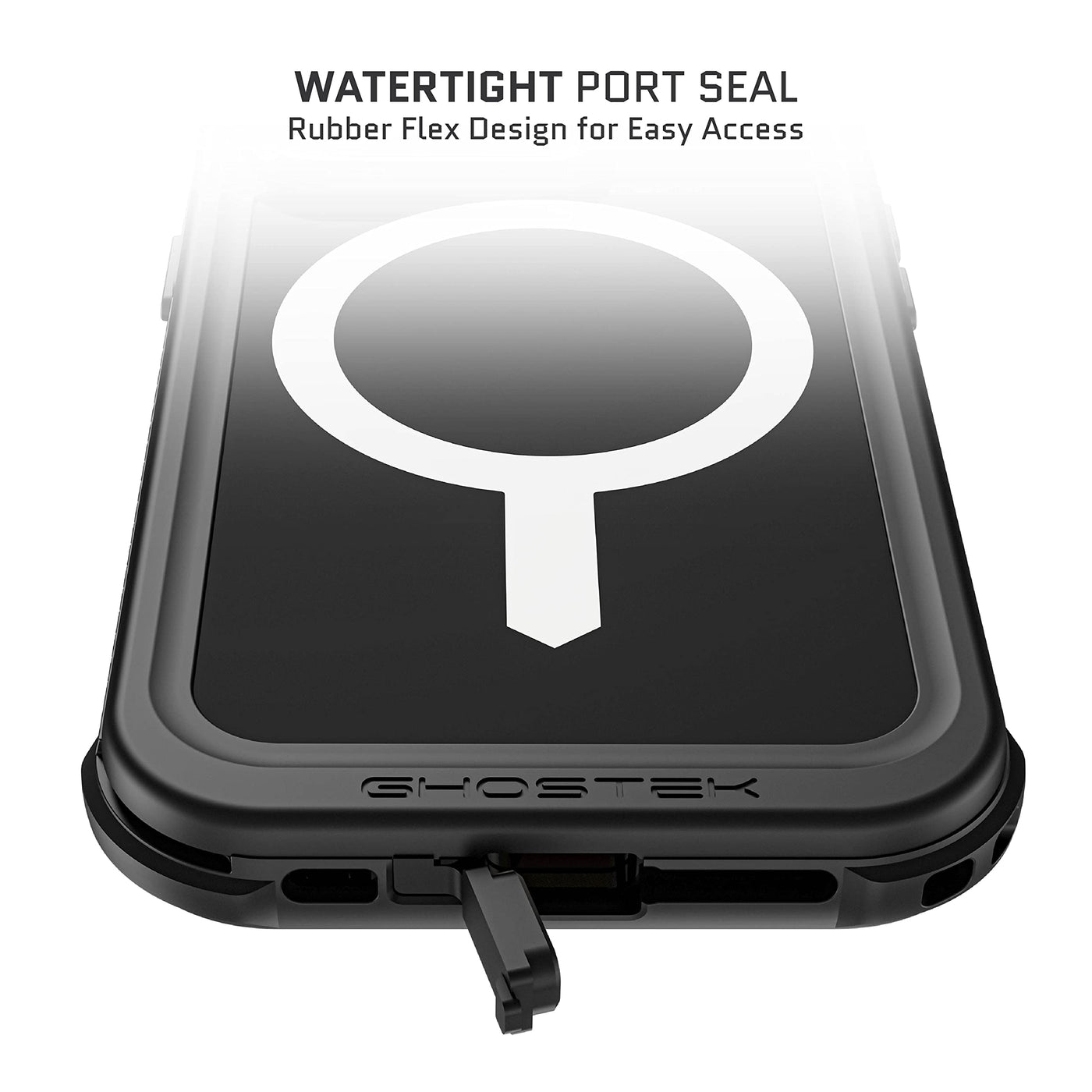 Ghostek Nautical Heavy Duty Iphone 14 Pro Waterproof Case Screen Camera Lens Protector, Belt Clip Holster, Magsafe Magnet Protec