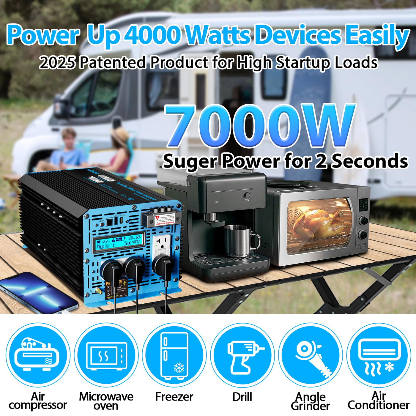 Giandel 4000W Pure Sine Wave Power Inverter 12V To 120V Ac,7000W Surge,Compatible With All 12V Batteries,Dual Remote Control,Ul
