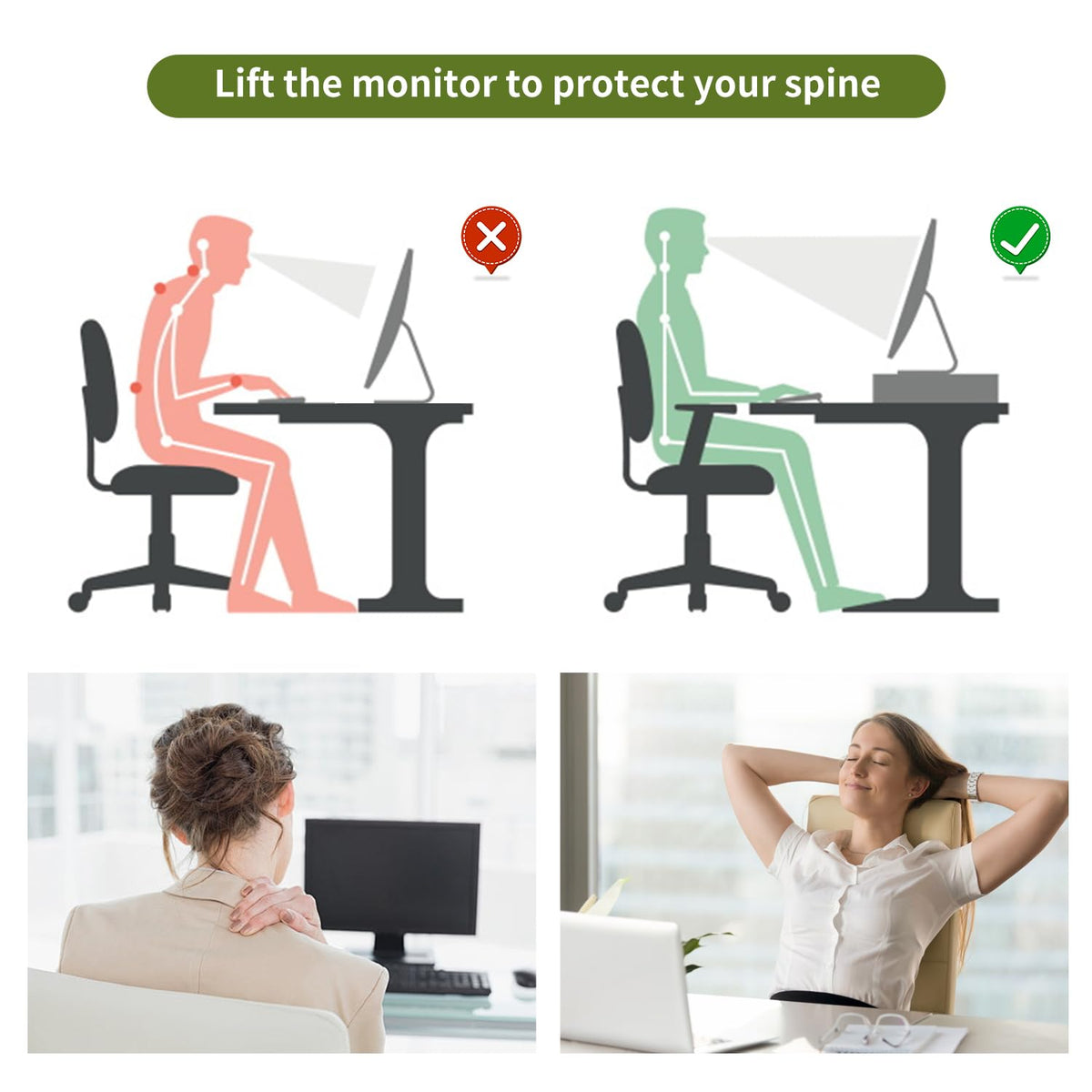 This Multifunctional Double-Layer Monitor Stand Has Ample Storage Space. It Carries A Sliding Drawer And 2 Hanging Pen Holders, Which Can Easily Store Your Desktop Supplies, And Can Even Be Used As A Printer Stand Or Phone Holder.