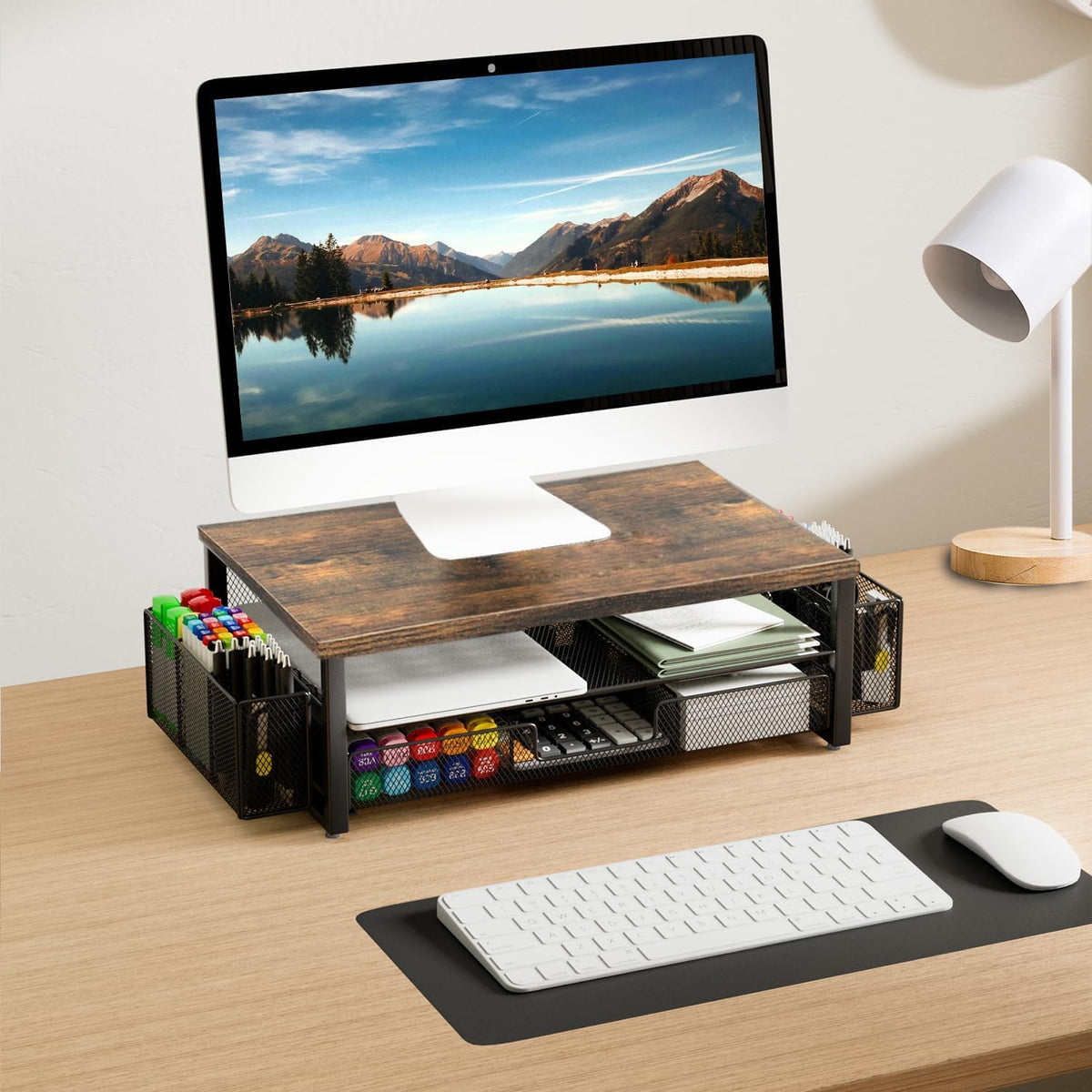 Gianotter Monitor Stand Riser, Desk Organizer With Drawer And Pen Holder, 2 Tier Computer Stand, Office Desk Accessories, Office