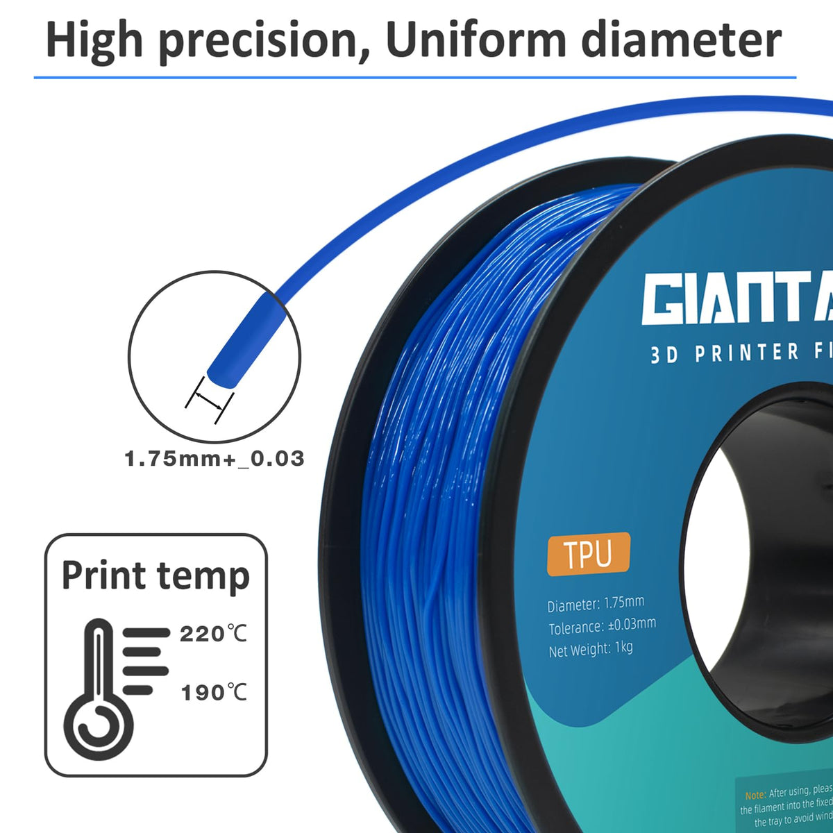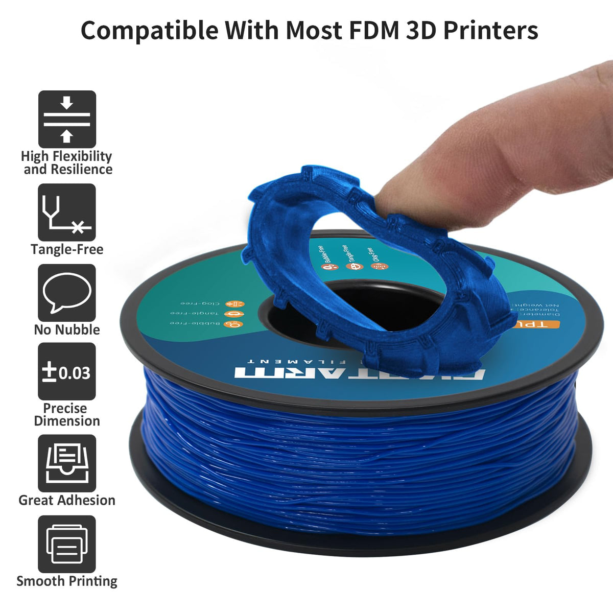 ?Soft Filaments Of High Elasticity?--- Giantarm Tpu 95A Is A Thermoplastic Polyurethane (Tpu) Based Filament Specifically Engineered To Work On Most Desktop 3D Printers. It Has A Shore Hardness Of 95A And Can Stretch 3 Times More Than Its Original Length. Excellent Bed Adhesion, Low-Warp And Low-Odor, Make These 3D Printer Filament Tpu Easy To Print. | ?Clog-Free, Bubble-Free & Easy-To-Use?--- Designed And Manufactured With Clog-Free Patent To Guarantee A Smoother And More Stable Printing Experience With Tpu Filament 1.75. Complete Drying For 24 Hours Before Packaging And Vacuum Sealed With Desiccants In A Transparent Bag, No Bubble And Easy To Print. Full Mechanical Winding And Strict Manual Examination, To Make Sure The Line Tidy And Less-Tangle, So As To Avoid Possible Snap And Line Breaking. | ?Dimensional Accuracy & Consistency?--- Advanced Ccd Diameter Measuring And Self-Adaptive Control System In The Manufacturing Guarantee These Soft Tpu Filaments To Be Strict Tolerances, Diameter 1.75Mm, Dimensional Accuracy 99% Probability +/- 0.03 Mm; 1 Kg Spool (2.2Lbs). | ?Wide Compatibility & Eco Free?--- With Over 9 Years