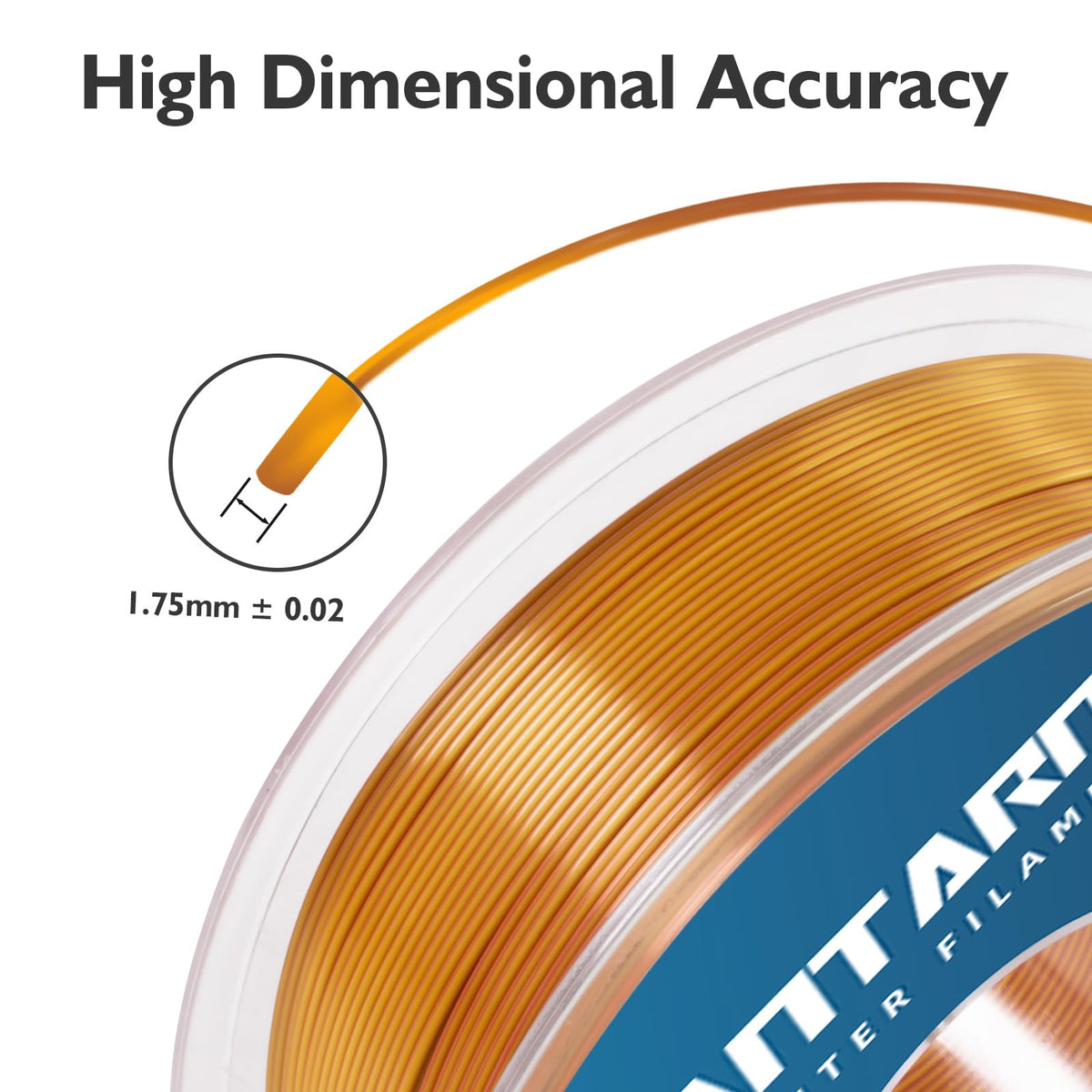 ?Dual Color Silk Pla?Giantarm Dual Color Silk Filament Is A Thread Composed Of Two Colors. You Can Change The Visible Color By Adjusting The Angle Of Silk Pla Filament. | ?Shiny Surface? Smooth And Shiny Like Silk, No Need For Extra Polishing. Using Dual Silk Pla Filament Printing Model Can Produce Unique Appearance And Beautiful Silk Surface. | ?Toughness Enhanced Pla Filament? Giantarm Silk Pla Filament Have The Advantages Of Incredible Toughness, Unique Printing Quality, High Purity With Low Shrinkage And Superb Layer Bonding, Meeting Your Personalized Printing Demands For Functional Parts. | ?1.75Mm Pla Filament? :Advanced Ccd Diameter Measuring And Self-Adaptive Control System In The Manufacturing To Make These 3D Printer Filament Of 1.75 Mm Diameter, Dimensional Accuracy + / - 0.02 Mm, Suitable For Most Fdm 3D Printers. | ?Clog-Free & Bubble-Free?: Completely Dried For 24 Hours Before Packaging And Vacuum Sealed With Desiccants In Nylon Re-Bag, Enable Much Smoother And More Stable Printing. Full Mechanical Winding And Strict Manual Examination, To Make Sure The Pla Filament Line Tidy And Less-Tangle.