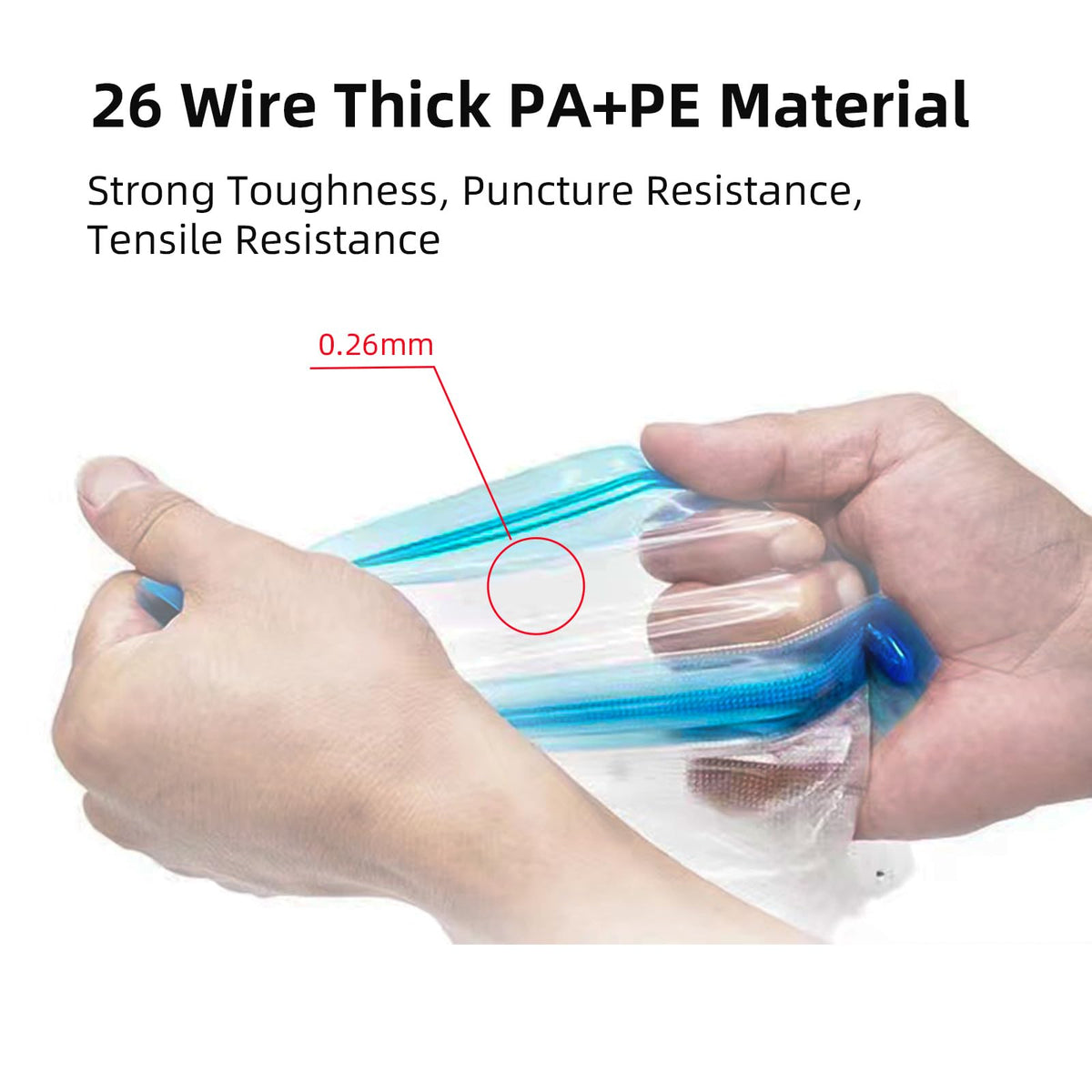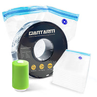 Q: What features enhance the sealing capability of the GIANTARM Filament Storage Bags?A: The bags feature a double-sealed zipper and a single-sided embossing design that improve sealing and air tightness. Additionally, a triple-sealed turbine valve is included to effectively remove air, ensuring long-lasting vacuum storage.