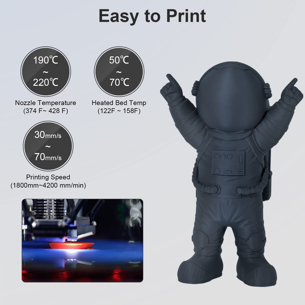 Q: What should I do if I encounter clogging issues while using this filament?A: To avoid clogging issues, ensure that the filament is stored in a dry environment, as it is vacuum packed with desiccant to minimize moisture absorption. If clogging occurs, check the nozzle size and clean it if necessary.