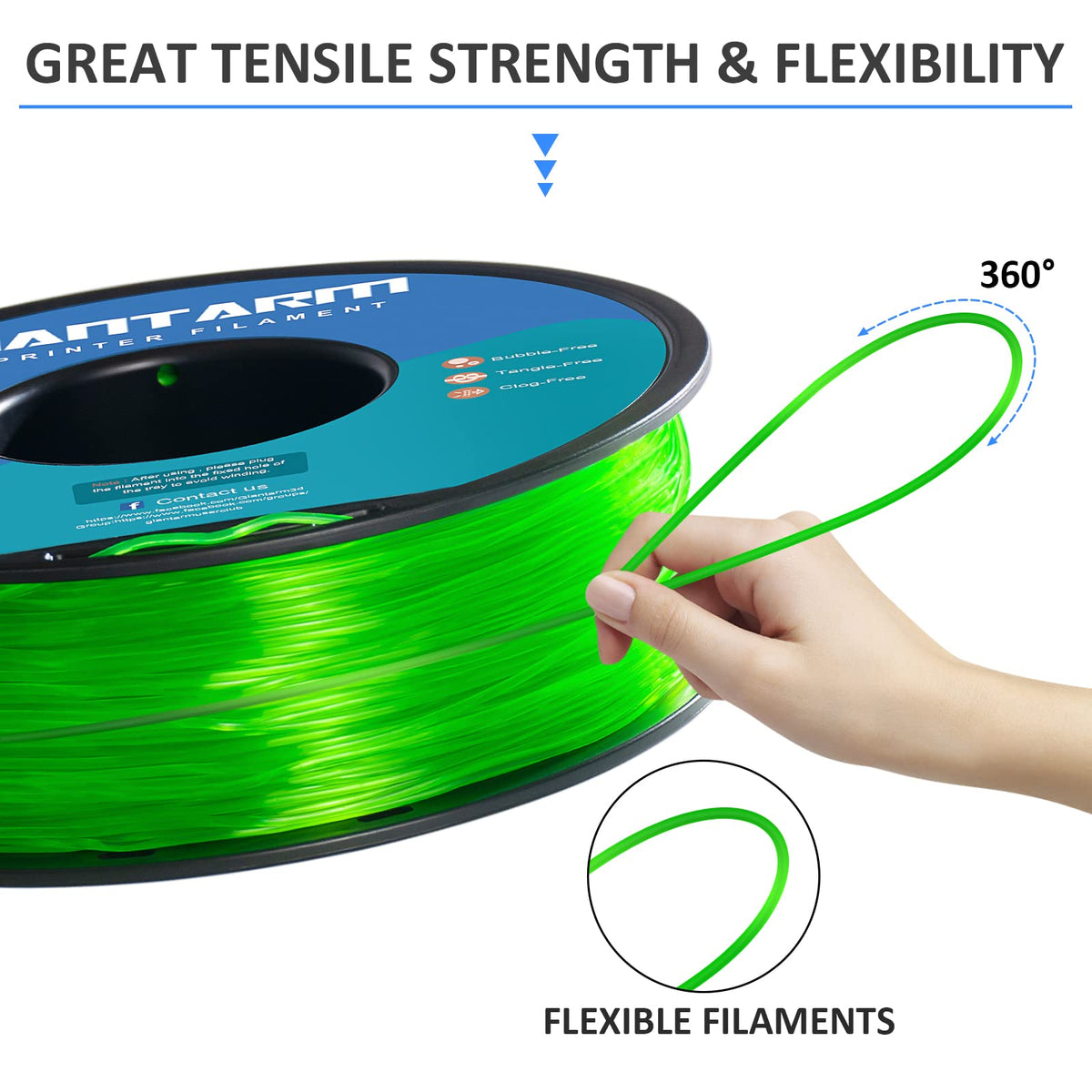 Q: Is Giantarm TPU filament suitable for all 3D printers?A: Yes, Giantarm TPU filament is engineered to work with most desktop 3D printers, making it a versatile choice for various printing applications.