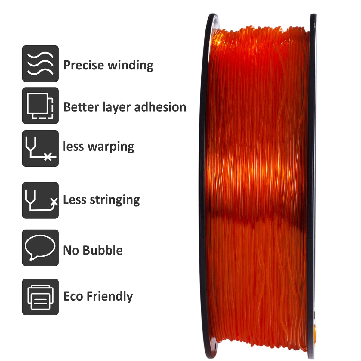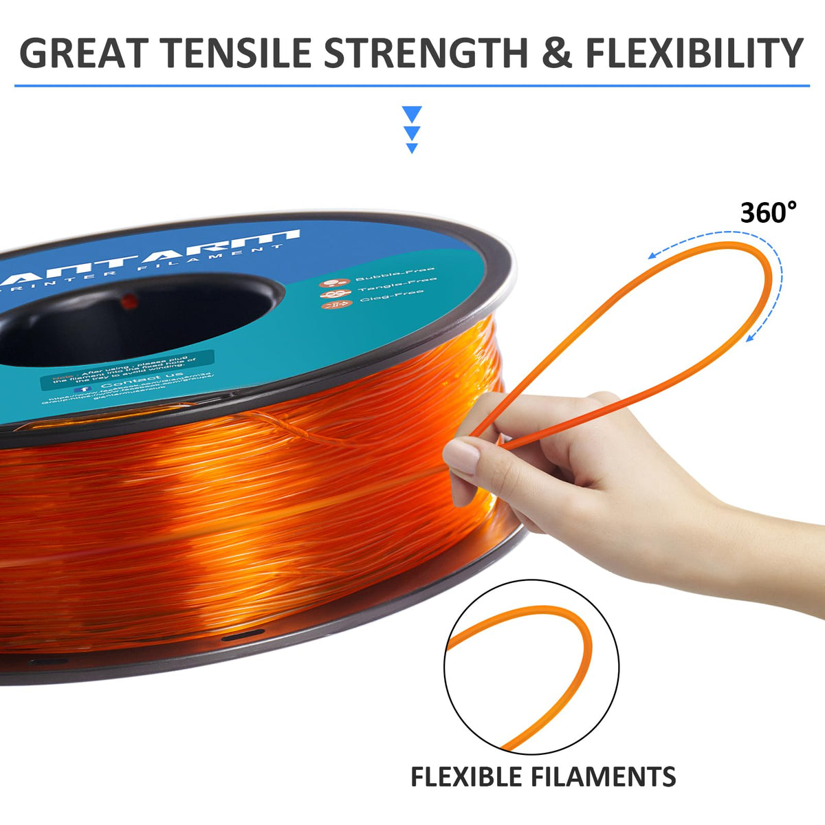 Q: How does the GIANTARM TPU Filament ensure a tangle-free printing experience?A: The GIANTARM TPU filament features a clog-free patent design, is completely dried for 24 hours before packaging, and is vacuum sealed with desiccants to prevent bubbles and ensure a smooth, stable printing experience.