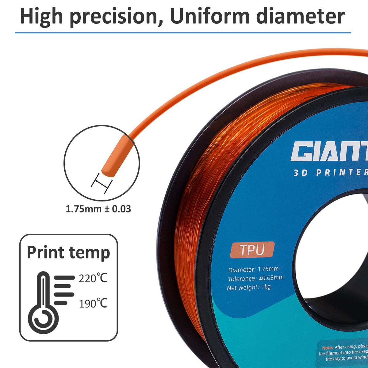 Q: Can the GIANTARM TPU Filament be used for flexible applications?A: Yes, the GIANTARM TPU filament, with its shore hardness of 95A, is specifically engineered for flexibility, making it suitable for a variety of applications that require soft, elastic parts.