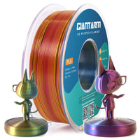 Q: What are the unique characteristics of the GIANTARM Tri-Colors Silk PLA filament?A: The GIANTARM Tri-Colors Silk PLA filament features three colors—orange, blue, and green—that shift in appearance based on the angle of viewing. It also has a shiny silk-like surface that requires no additional polishing, enhancing the aesthetic quality of your prints.