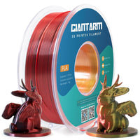 Q: What are the unique features of GIANTARM Tri-Colors Silk PLA filament?A: GIANTARM Tri-Colors Silk PLA filament features a unique combination of three colors: red, gold, and black. This filament allows you to change the visible color by adjusting the angle, creating stunning effects in your 3D prints. Its shiny surface mimics silk, eliminating the need for additional polishing.