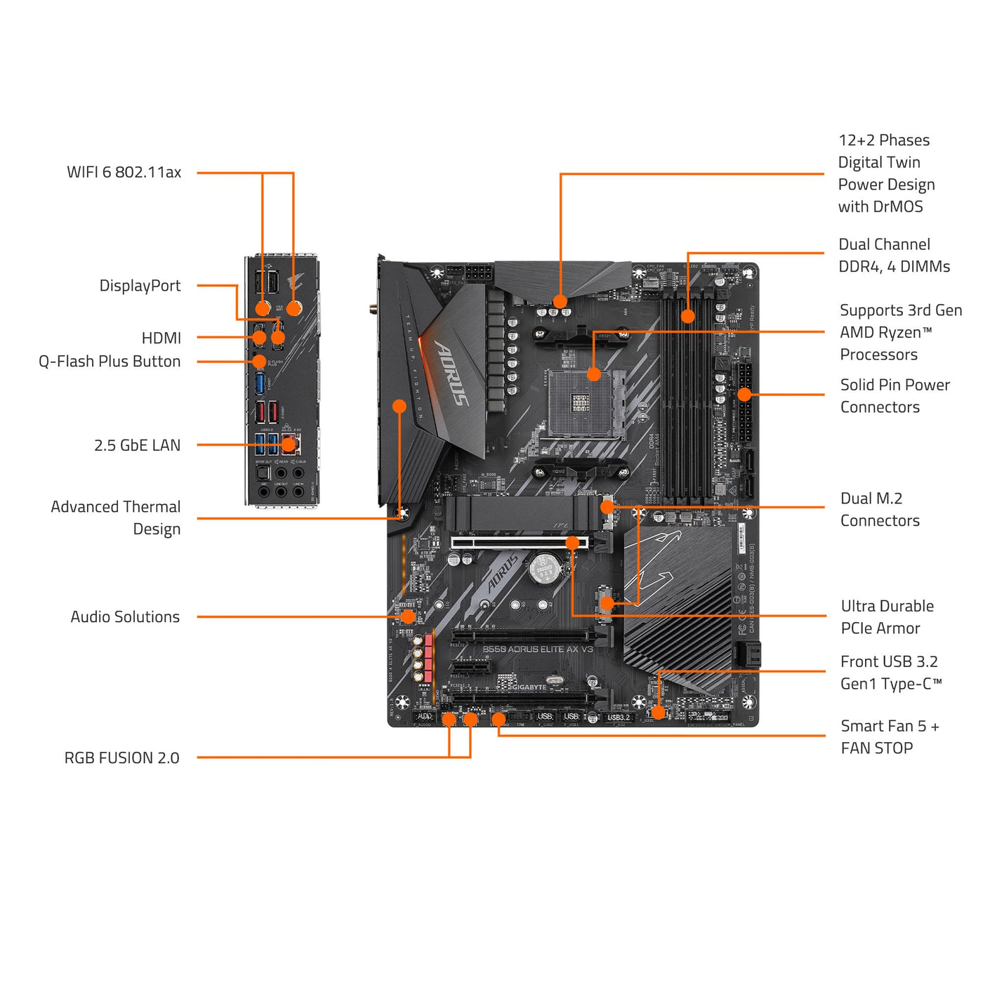 Gigabyte B550 Aorus Elite Ax V3 Am4 Amd B550 Atx Motherboard With Dual M.2, Sata 6Gb/S, Usb 3.2 Gen 2, Wi Fi 6, 1Gbe Lan, Pcie 4
