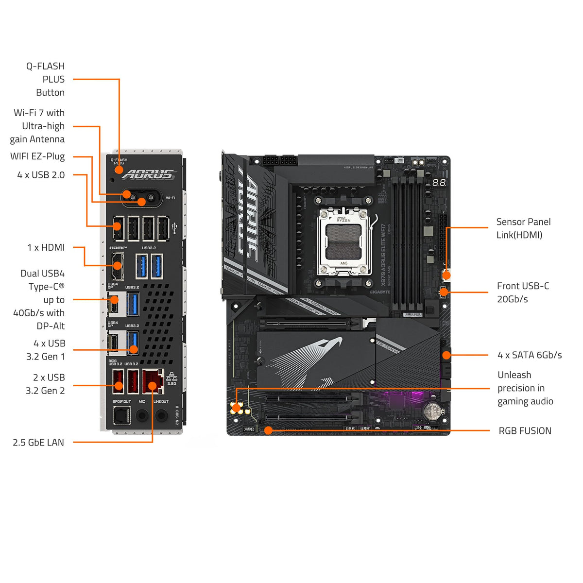 The X870 Aorus Elite Wifi7 Supports Am5 Processors And Features Unparalleled Performance. Gigabyte X870 Motherboards Come With Upgraded Power Design, High Grade Storage Standards, And Outstanding Connectivity That Enables You To Optimize Your Performance.