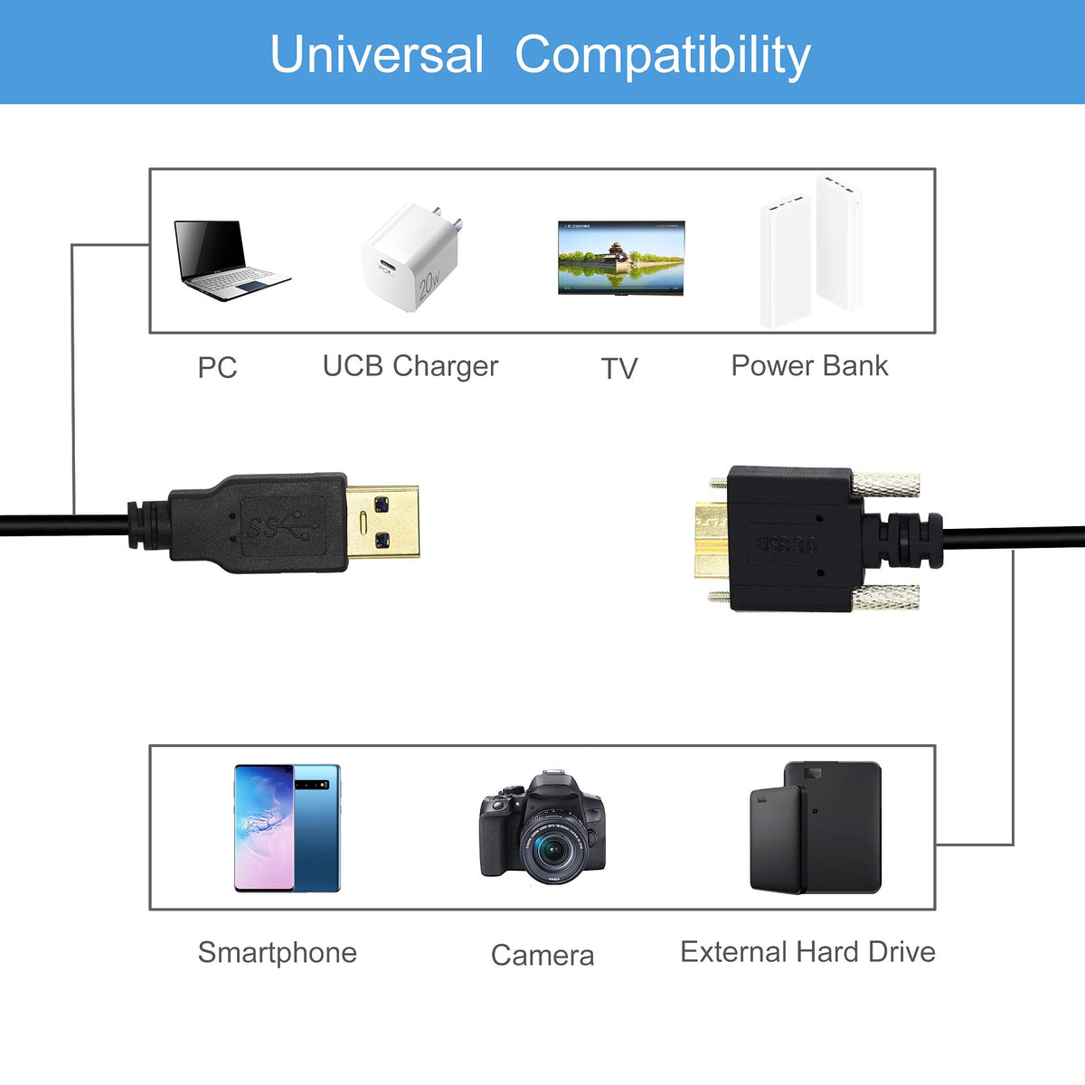 Gintooyun 3M Usb 3.0 A Male To Micro B Male Cable With Locking Screws For Hard Drive, Smartphone, Tablet And Pc