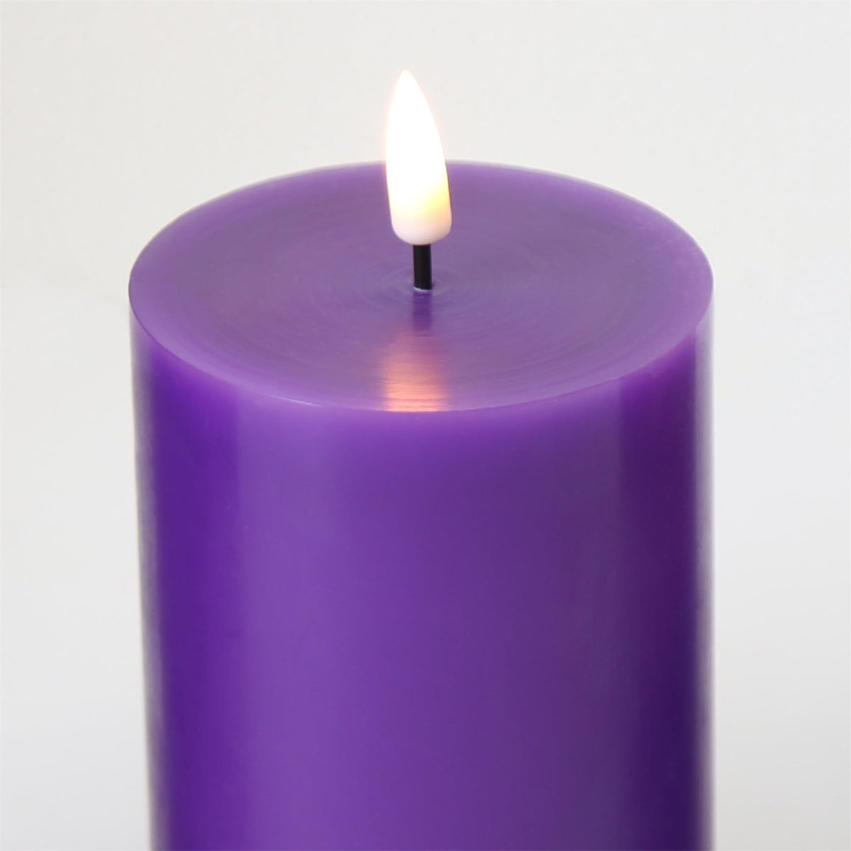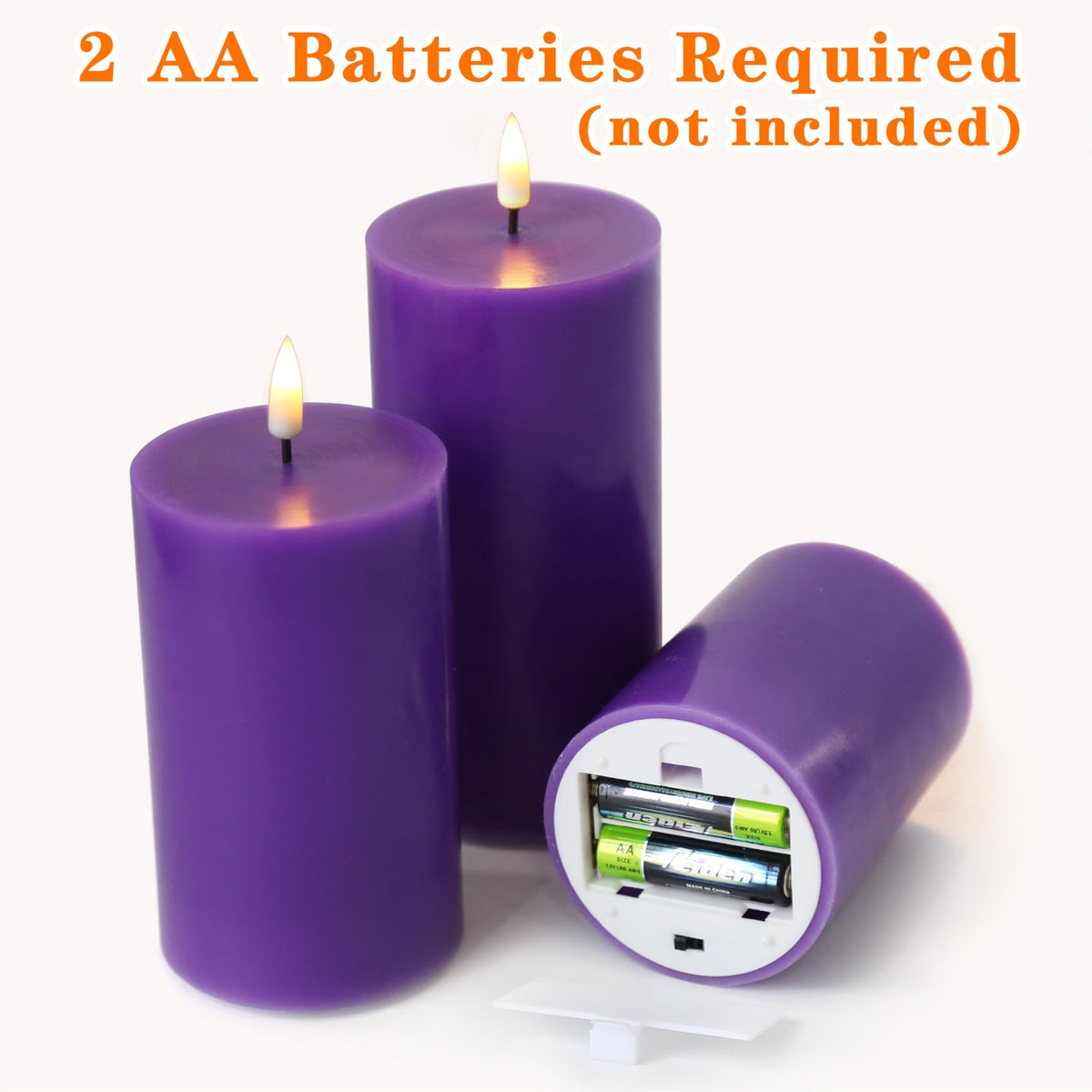 Girimax Purple Flat Top Flameless Led Pillar Candles Set Of 3, Made By Real Wax, Battery Operated, Remote Controlthese Led Candles Give You All Of The Ambiance And Realism Of Traditional Open-Flame Candles, Flameless, No Unpleasant Scents Or Dripless, Windproof, Great For Pets Or Kidsnatural Birch Log Look, Made From Real Wax With Simulated Black Wick, These Candles Will Refresh Your Room Space And Also Be A Great Addition To Holidays, Festivels, And Birthday Gifts-Realistic & Lifelike: -These Led Candles Are Made Of Real Wax With Simulated Flame Technology, However There Is No Burning Wick, Smoke Or Messy Dripping Wax.- Battery Operated Candles - Each Pillar Candle Is Powered By 2 Aa Batteries (Not Included), Which Provides 350 + Hours Continuous Lightremote Control - On/Off, 2/4/6/8 Hours Timer, Flickering/No Flickering, Brightness/Dim. If You Want To Stop Timer Function, Please Turn Candles Off Manually. Package Included - 1 X Small Led Candle (Size: D 3'' X H 4'') - 1 X Medium Led Candle (Size: D 3'' X H 5'') - 1 X Large Led Candle(Size: D 3'' X H 6'') - 1 X Remote Control (1 X Cr2025 Battery Is Included In The Remote)More Tips:-This Candle Is Made Of Real Wax And Is Flammable. Do Not Attempt To Light This Candle.-Keep Out Of Direct Sunlight, Away From Heat Sources And Out Of Extreme Temperatures Or Your Candle May Soften Or Melt.-Constant Use Of The Timer However May Considerably Reduce Battery Life.