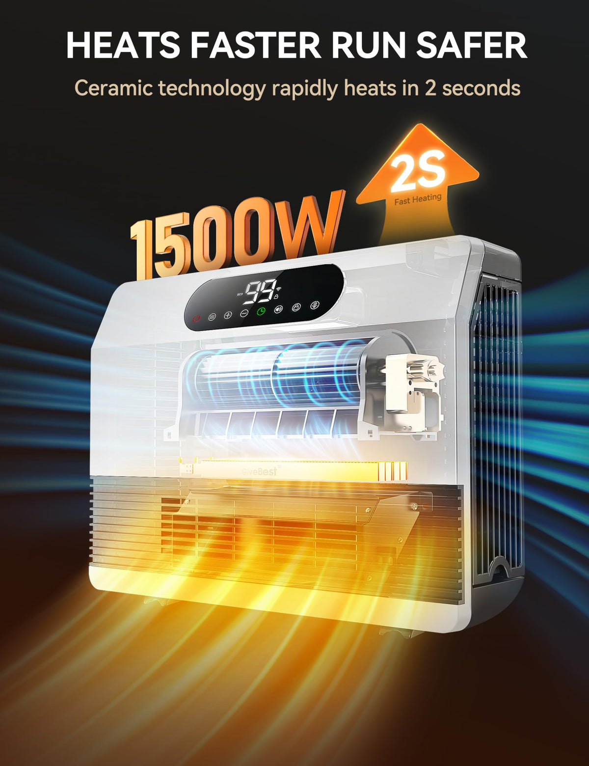Givebest Smart Eletric Wall Heater With Wifi And Remote Control - Fill Your Room With Cozy Warmth. ? This Heater Offers Seamless Control Via Wifi With The App, The Remote, Or The Touchscreen, Letting You Switch Between Three Heating Modes, Adjust The Temperature, Set Timers, And Change Settings Effortlessly. Enjoy The Convenience Of Smart Home Technology At Your Fingertips. ? Versatile In Design, The Heater Can Be Wall-Mounted Or Used With A Standing Base, Fitting Any Space. Save Floor Space By Mounting It On The Wall Or Place It On The Floor For Easy Access, Adapting To Your Needs. ? With A Powerful 1500 Watts And 5200 Btu, This Heater Quickly Warms Spaces Up To 200 Square Feet, Ensuring A Cozy Environment. The Eco Mode Helps Conserve Energy And Reduce Costs, While The Quiet Centrifugal Fan Provides Effective Warmth Without Disrupting Your Peace And Quiet. Features ? Phone App, Remote Or Touchscreen Control ? Wall-Mounted Or Floor Placement ? Efficient Heating ? Eco Mode ? Quiet Operation ? Digital Display ? Adjustable Temperature ? Work With Alexa Specifications ? Heating Modes: Heat,Eco,Fans ? Dimensions: 4.7 L X 16 W X11.4 H ? Heat Output: 1500 Watts And 5200 Btu ? Color: White ? Power Source: Plug-In ? Usage: Indoor Use ? Control Ways: Phone App, Remote, Touchscreen Package Included 1 Givebest Smart Eletric Wall Heater 1 Remote Controller 1 User Manual 1 Intallation Template
