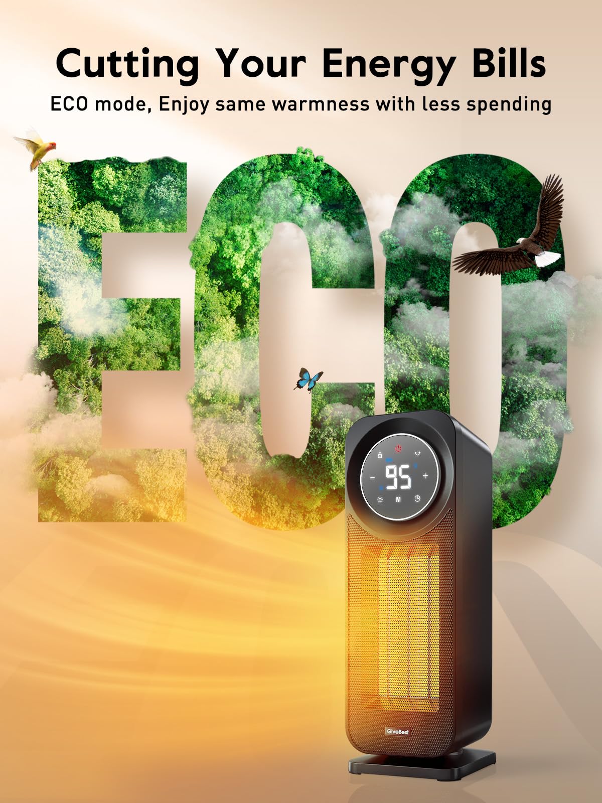 ?1500W Fast Heating And 5 Modes?The Givebest Ceramic Space Heater Heats Up More Efficiently With Up To 1500W Working Power, Reaching Your Desired Temperature Immediately, Letting You Feel Fast, Balmy Heat Straight Away. Choose From 5 Heating Modes Eco, P3(1500W)/P2(1000W)/P1(500W), Fan Only According To Your Needs. | ?Warm Any Angle?Bring Warm Air To Every Corner Of Your Room. The 80