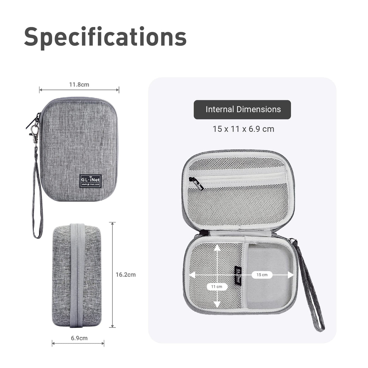 The Travel Organizer For Electronics! Hard Carrying Case Replacement For Gl-Axt1800, Gl-Mt1300, Gl-Sft1200, Gl-E750, Gl-Ar750S, Gl-Ar750, Gl-Mt300N-V2, And Gl-Ar300M. Perfect For Travel, Keep Your Devices Organized. Product Description Features: Case Is Made Of Supreme Quality, Durable Eva, Crush Resistant, Anti-Shock, Water Resistant Material Provides Adequate Protection From Bumps, Scratches And Splashes. With Internal Mesh Pocket Can Store Other Accessories. Internal Dimension: 5.9 X 4.3 X 2.7 Inch, External Dimension: 6.3X 4.7 X 2.8 Inch Durable Exterior Material: Polyester Fiber With Soft Pad Inserted. The Durable Material Can Protect The Device And Accessories Inside. The Protection From The Soft Pad Reduces The Impact Of Falling And Shocks. Physical Features Colour: Grey/Blue/Black External Size: 16.2Cm*11.8Cm*6.9Cm / 6.3In*4.7In*2.8In (L*W*H) Weight: 138G / 4.87Oz Package Content 1 X Gl.Inet Travel Router Accessories Organizer Bag (Electronics Accessories Are Not Included)