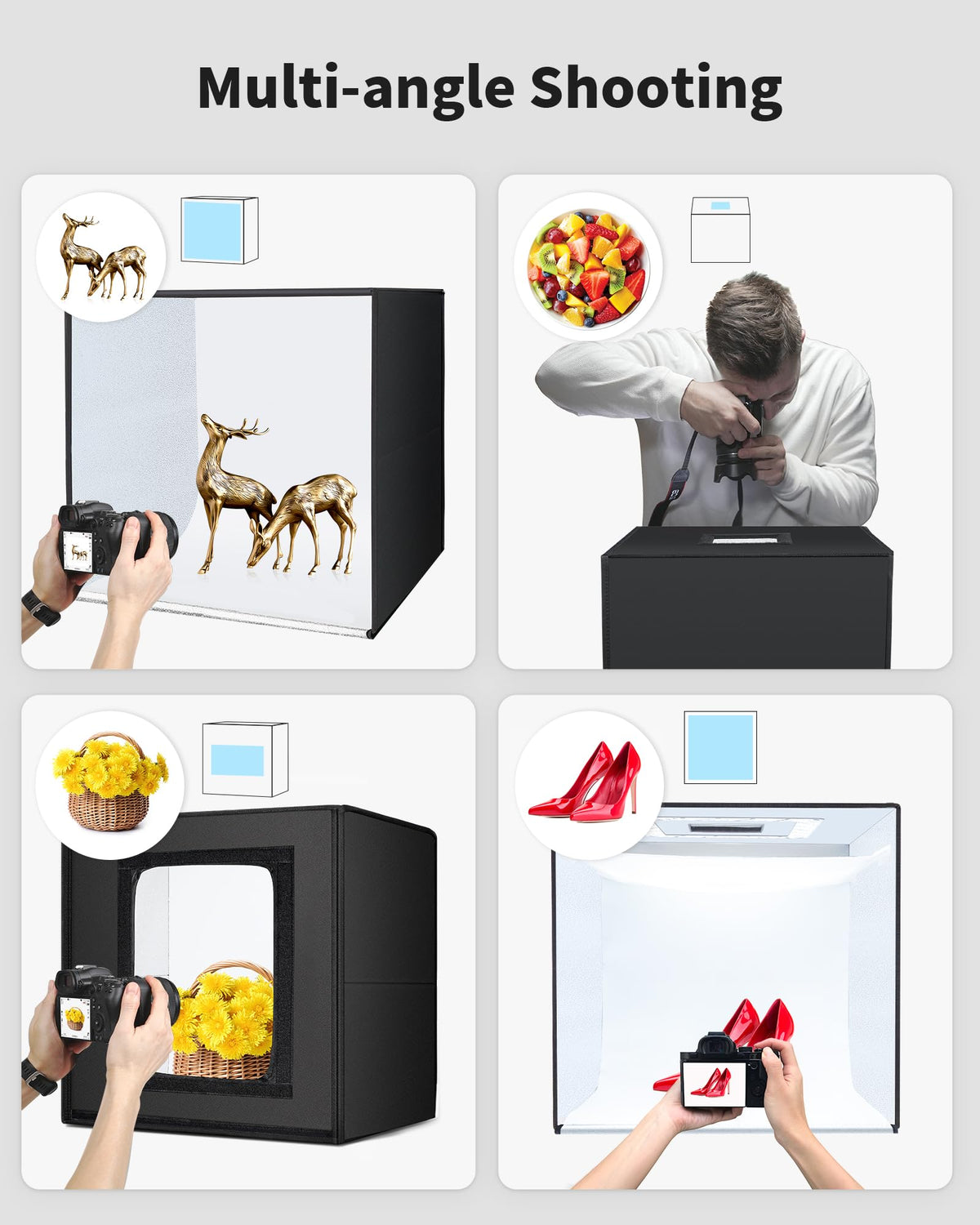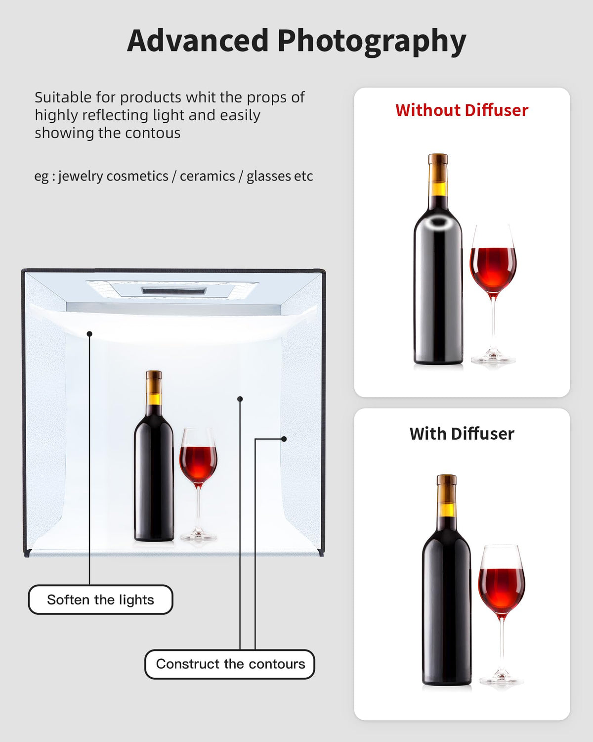 Glendan Photography Light Box Built With 240 High-Quality, Dimmable Led Lights That Help You Find The Right Lighting To Show Off The Beauty Of Each Unique Piece You Shoot. It Also Comes With A Variety Of Colorful Backgrounds, A Light Diffuser, And Light Reflection Boards. When Youre Done With Your Shoot, The Studio Light Box Folds Up And Even Has A Convenient Carrying Handle.