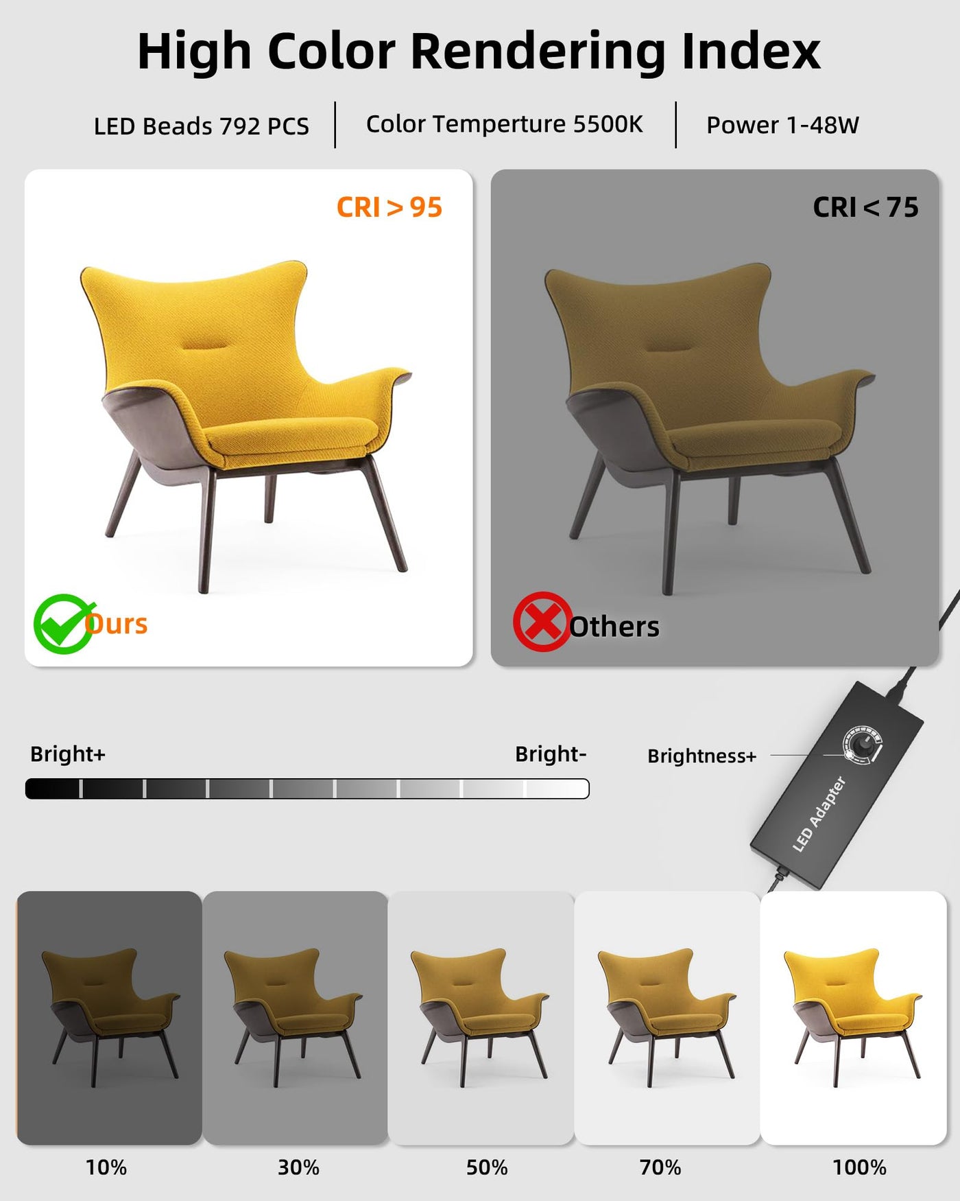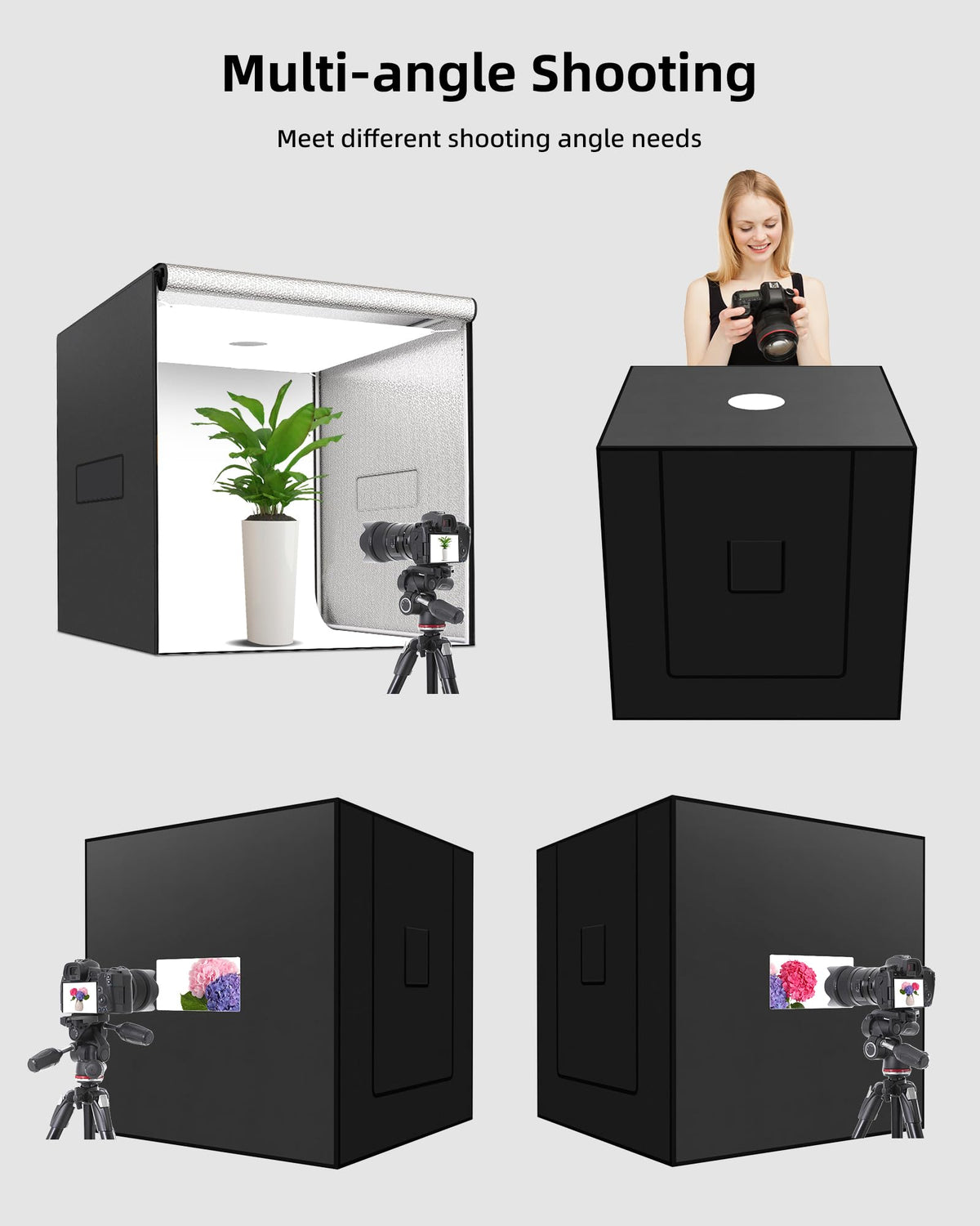 ?Easy To Assemble? Our Large Light Box Has A Particular Folding Design That Allows For Assembly In Just 5 Seconds, Without The Need For Brackets, Screws, Or Complicated Lighting Layouts. It Comes With A Durable And Waterproof Carry Bag, Making It Compact And Convenient To Use In Any Location Without Taking Up Too Much Space.
