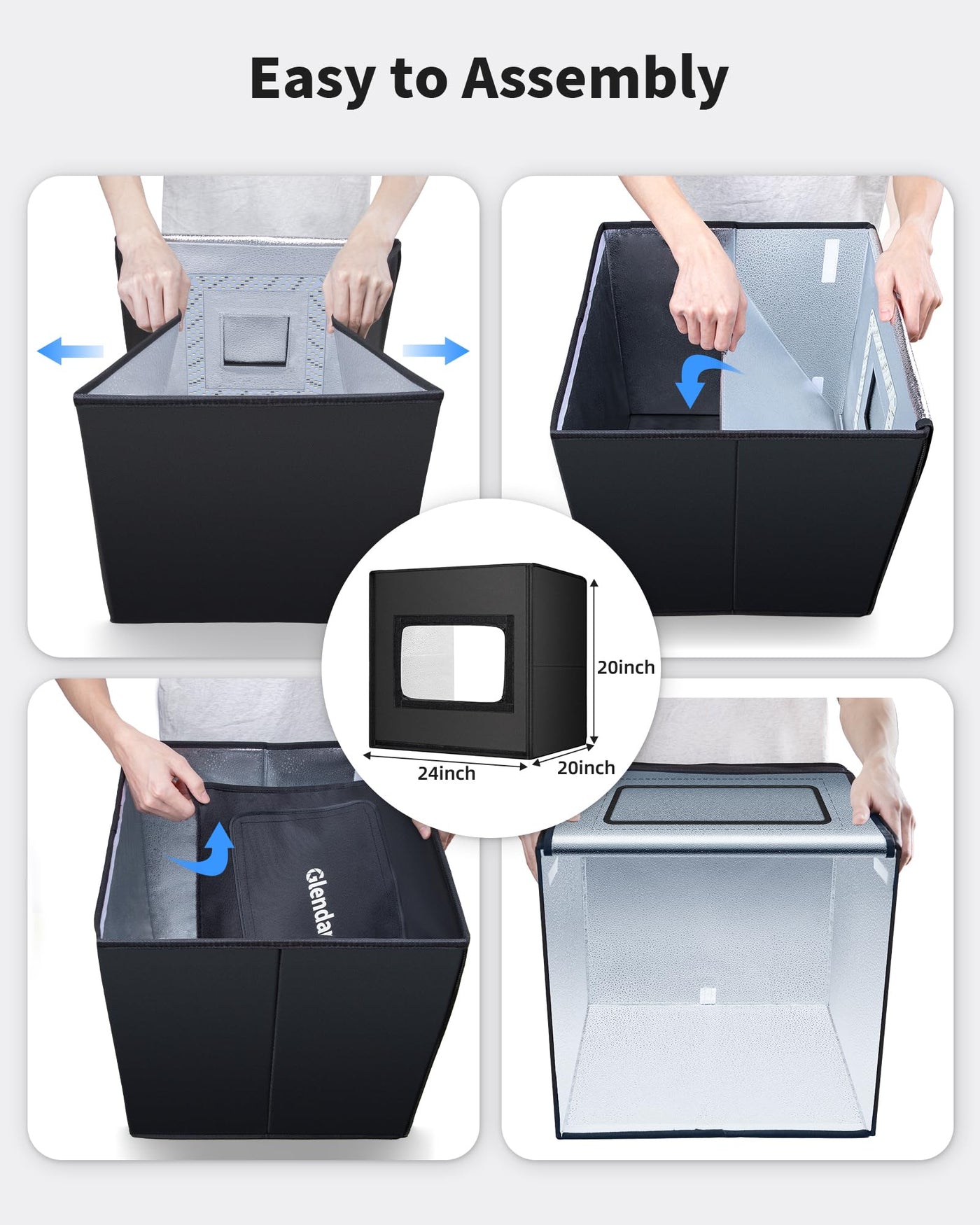 Q: Is the light box portable and easy to set up?A: Yes, the Glendan Light Box is designed for easy portability and quick setup, taking only 5 seconds to assemble without any complicated brackets or screws.