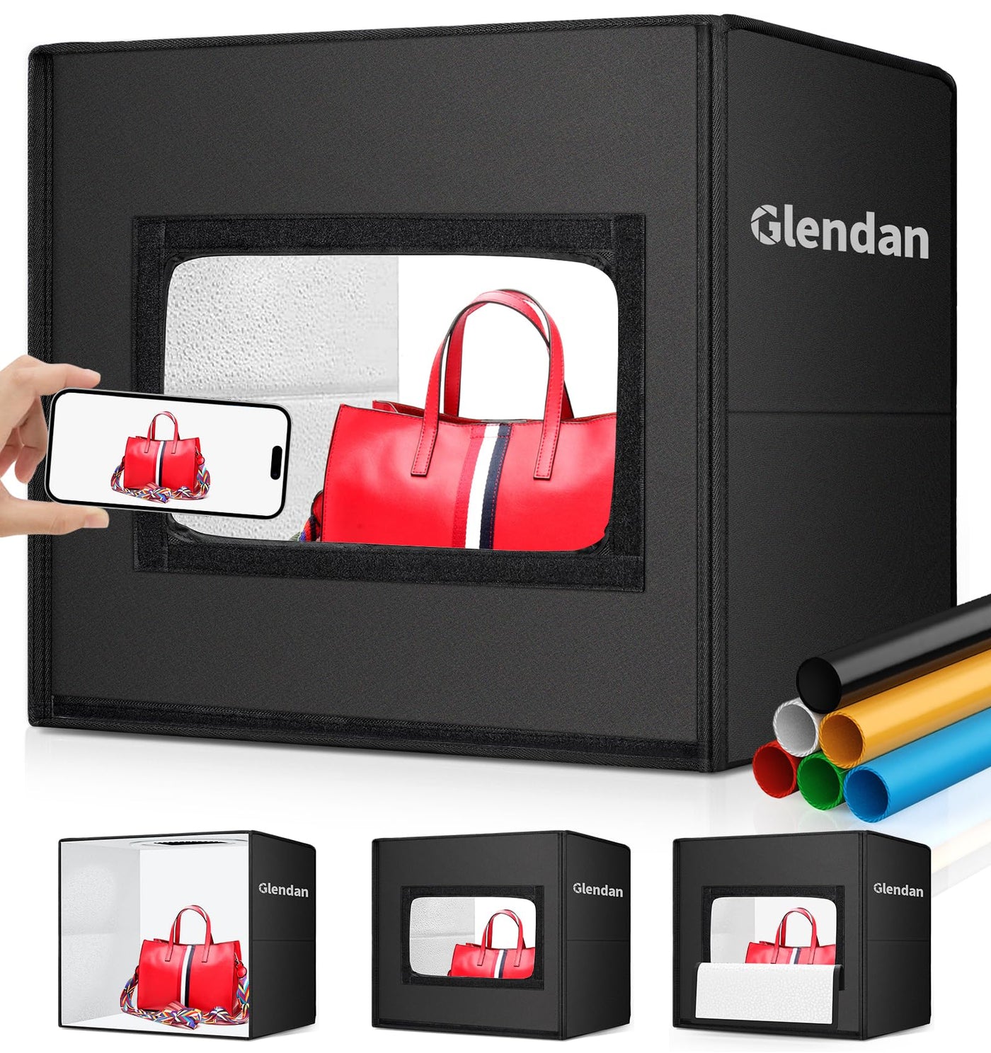 Q: What are the dimensions of the Glendan Light Box?A: The Glendan Light Box measures 24 inches by 20 inches, providing ample space for various product photography needs.