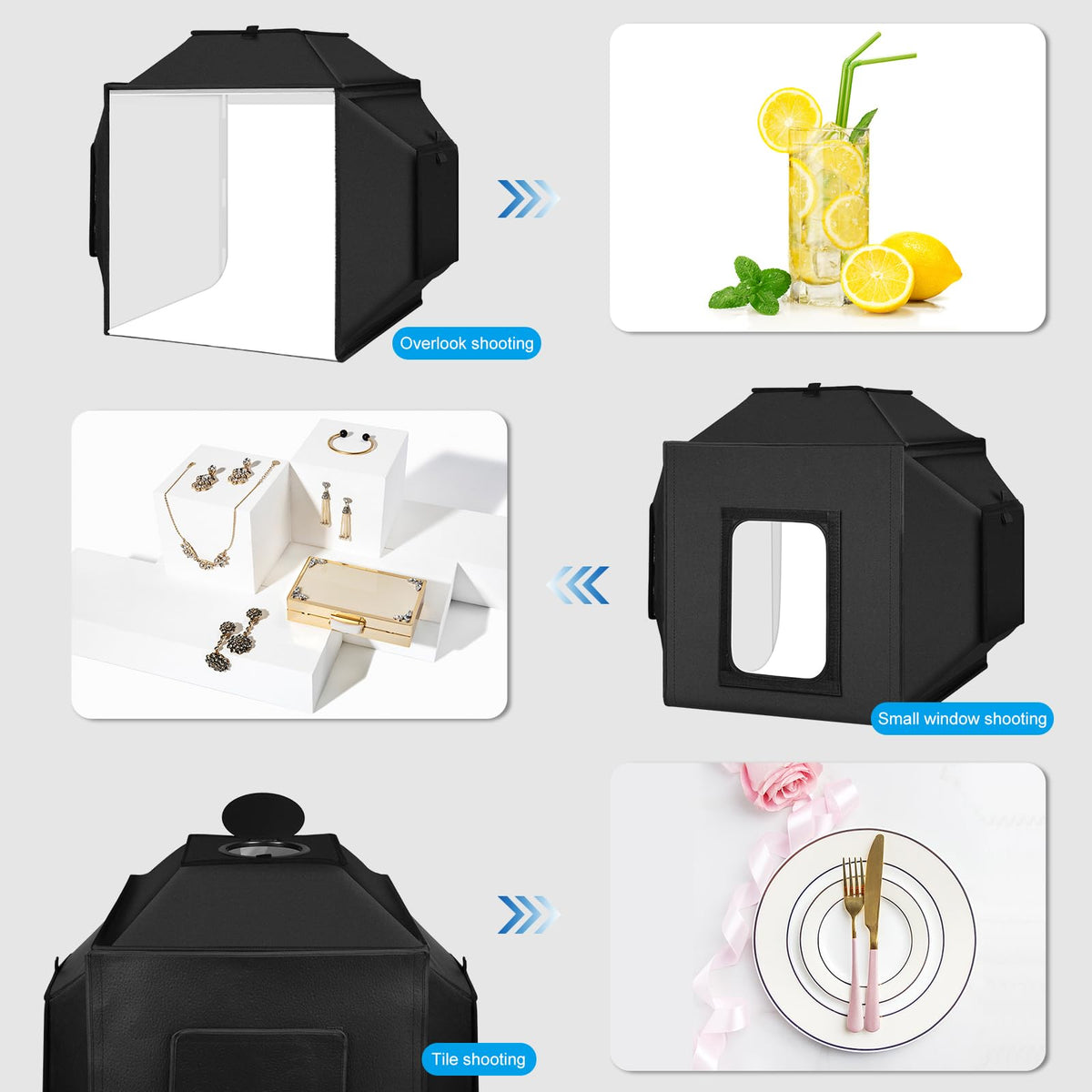?Multi-Angle Shooting?Multiple Openings Enable You To Choose Any Photo Shooting Position For Getting More Perfect Product Features And Beauty.