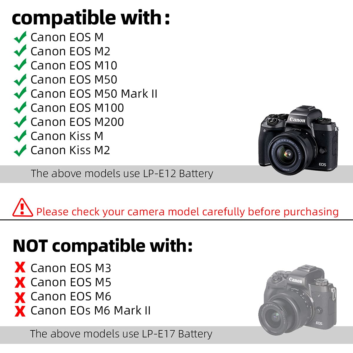 Compatible With Models: Digital Cameras Canon Eos M, M2, M10, M50, M50 Mark Ii, M100, M200, Kiss M, Kiss M2 Mirrorless.