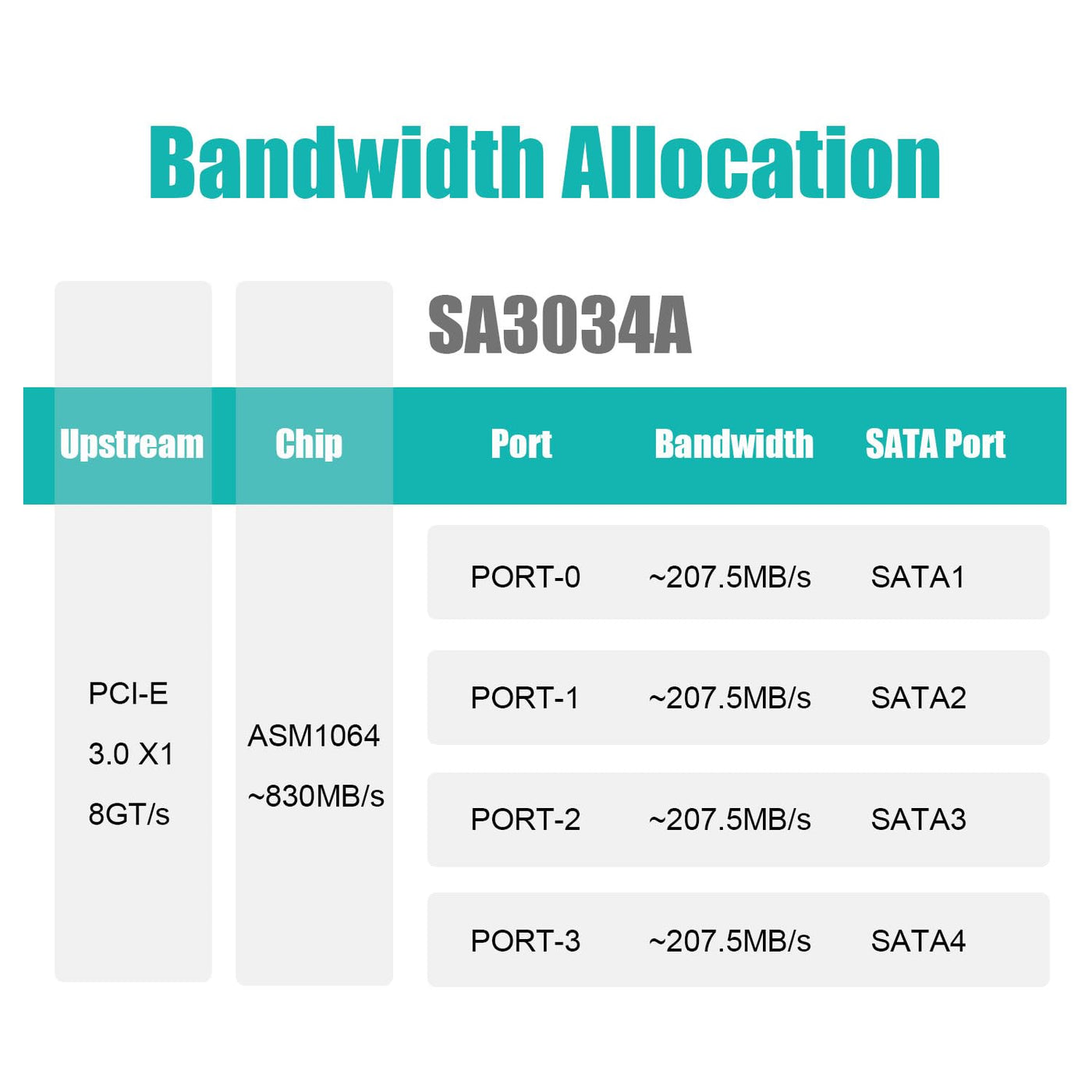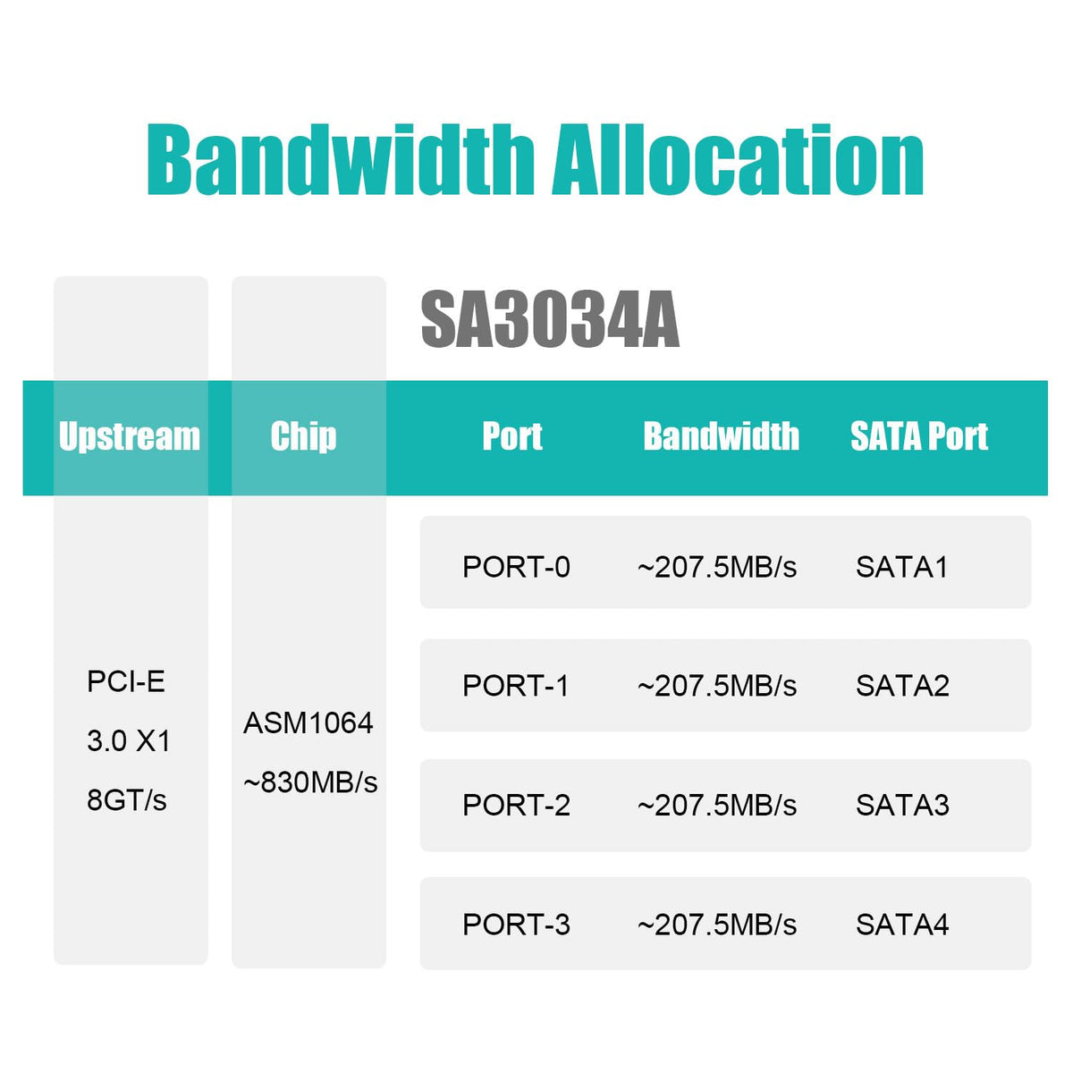 Pcie Sata Adapter Card With 4 Port Sata Iii 6Gbps (Including Sata Cables And 15Pin Sata Splitter Power Cable), Support Os Booting, Pci-Express 3.0 X1 Speed Bandwidth, Compatible With Windows,Linux,Mac Os,Nas (Sa3034A)