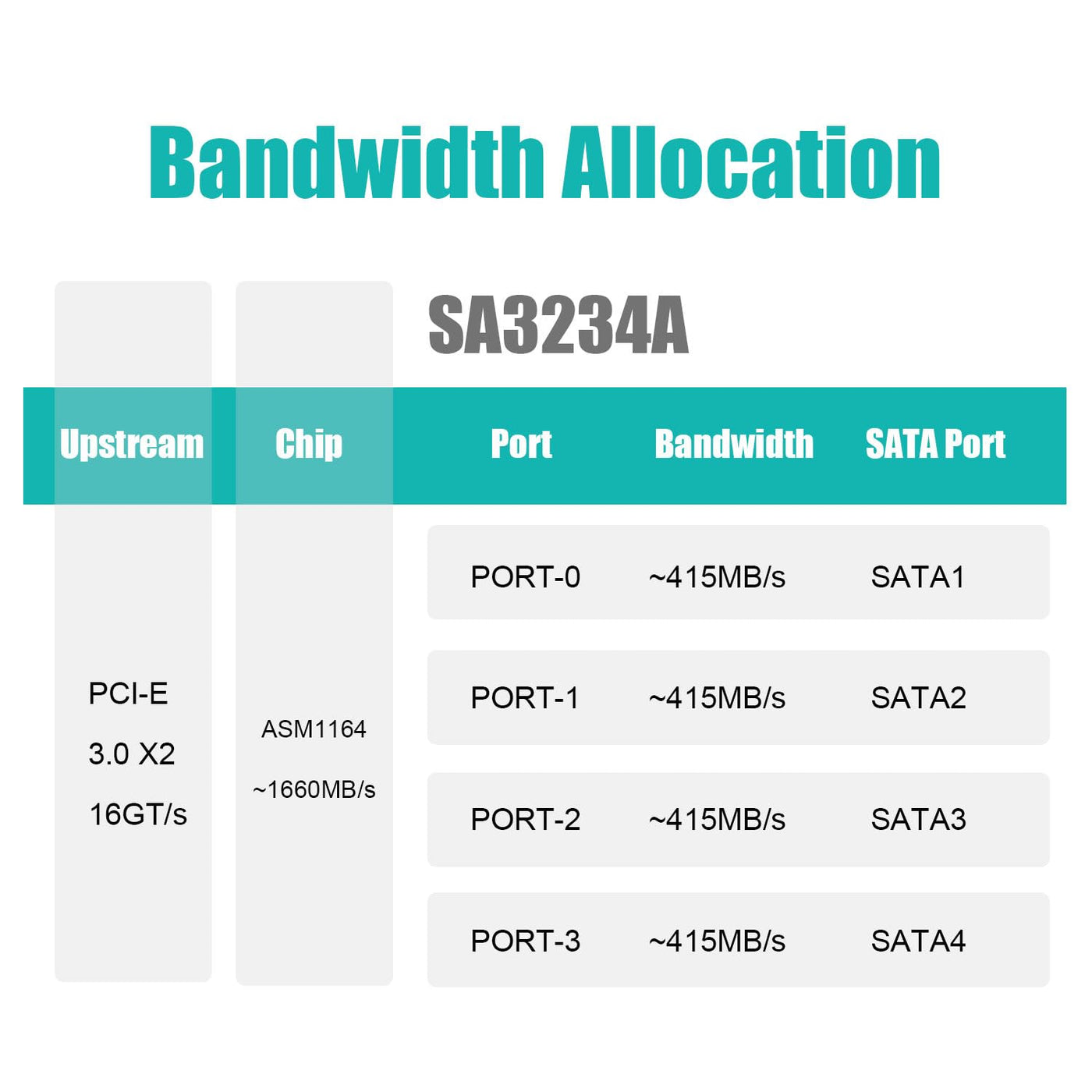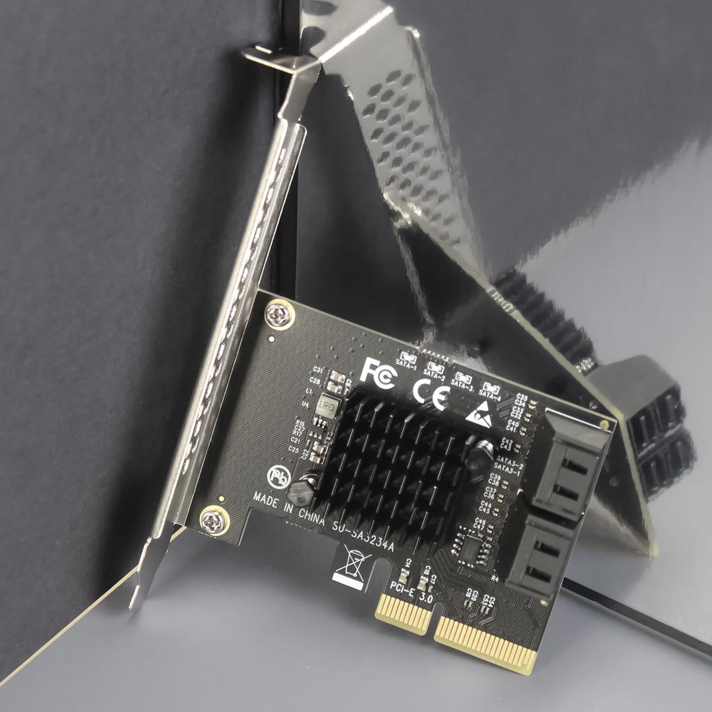 Glotrends Sa3234A 4-Ports Pcie X2 Sata 3.0 Expansion Card, Support Os Booting, Including Sata Cables And 1:5 Sata Splitter Power Cable, Compatible With Windows, Linux, Mac Os, Nas