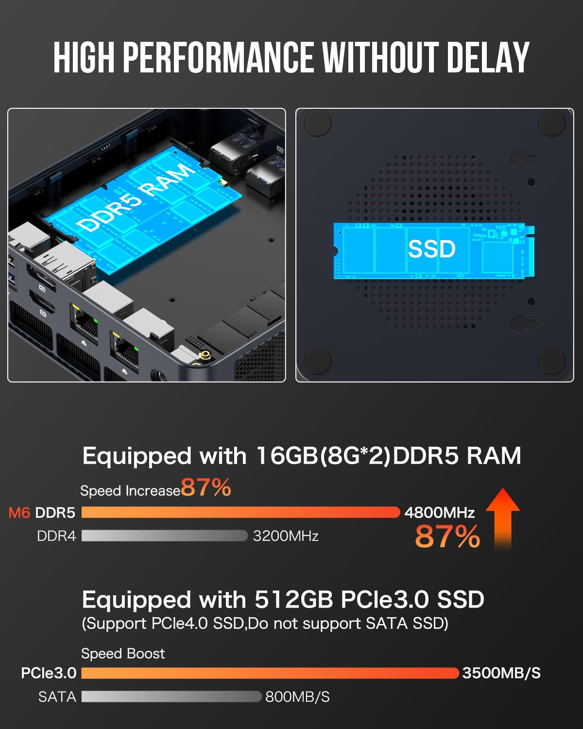Gmktec M6 Gaming Pc Mini Amd Ryzen 5 6600H(Max 4.5Ghz) Windows 11 Pro Dual Nic Lan 2.5G Ddr5 Dual Ssd Slot/Wifi 6E, Usb3.2, Usb